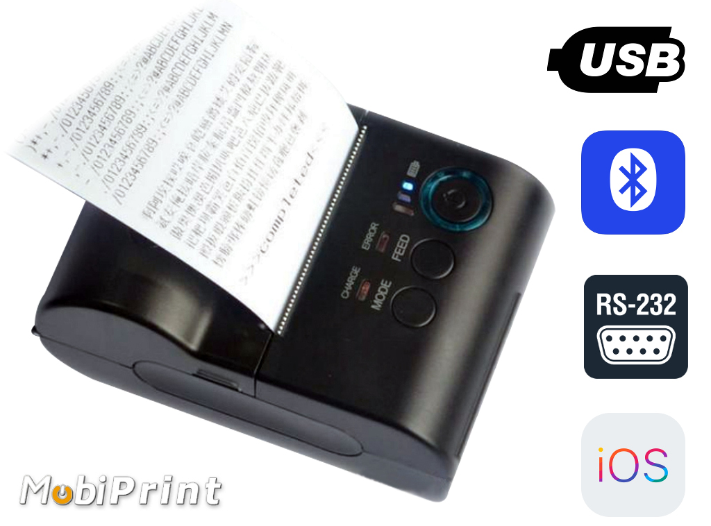 Modern, wireless (Bluetooth) thermal printer MobiPrint MP-801LD was designed with users in mind, for which it is necessary to print invoices, receipts or labels in places where there is no access to the electricity grid, transportation and mobile commerce, at events, etc.
