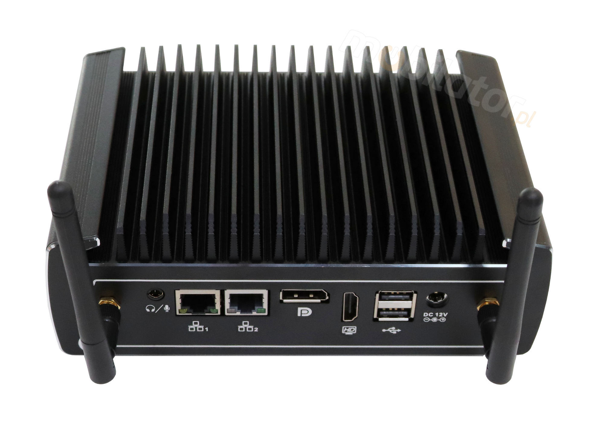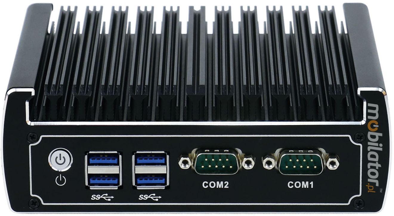 The industrial Mini PC uses a proven cooling system, based only on solid elements, mainly heat sinks. The system uses the phenomenon of metals passing thermal energy into the environment - there are no additional moving elements in the form of eg fans. This solution ensures noiseless operation, lower failure rate and greater protection against dust and other dirt while reducing the amount of energy consumed.