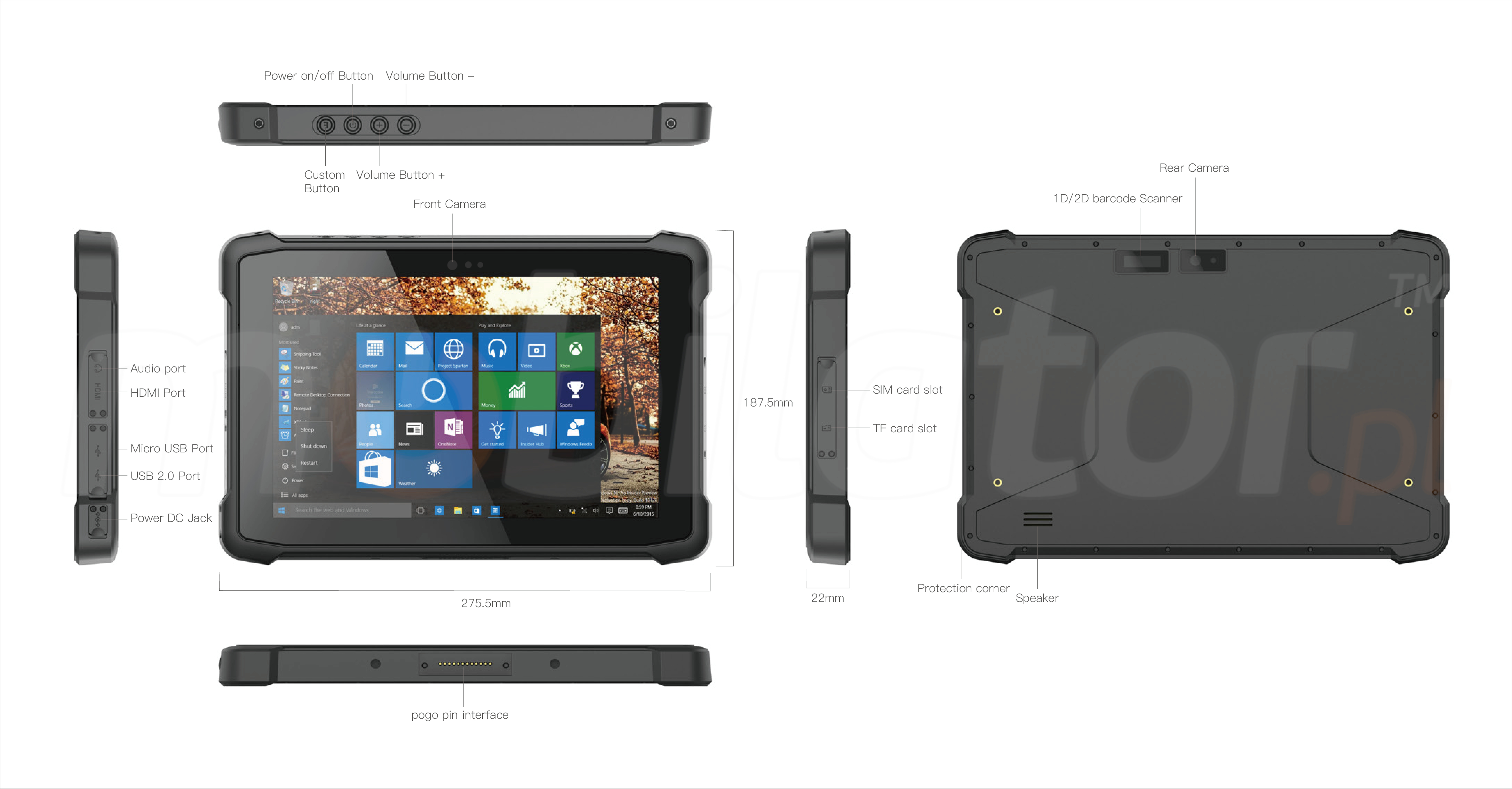 HDMI | USB 2.0 | Micro USB | Audio Jack | pogopin