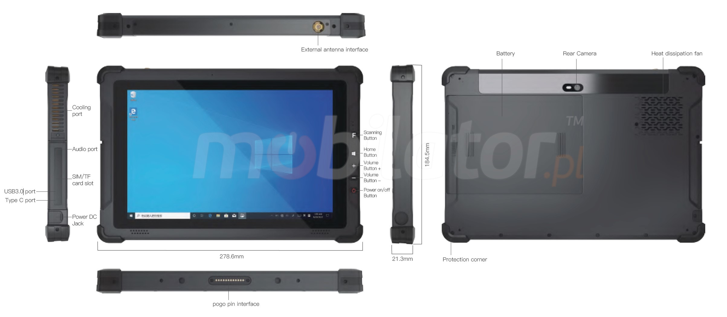 Emdoor I12U industrial tablet is designed for resistance and convenience.The sleek and rugged 21.3mm thick design and stylish case will make the tablet very well suited for industrial use and more.The unique size has been carefully thought out to make the device more comfortable and ergonomic.The non-slip casing makes it safe and secure to hold it in your hand, and the rubber corners further protect your device against possible damage as a result of falls.