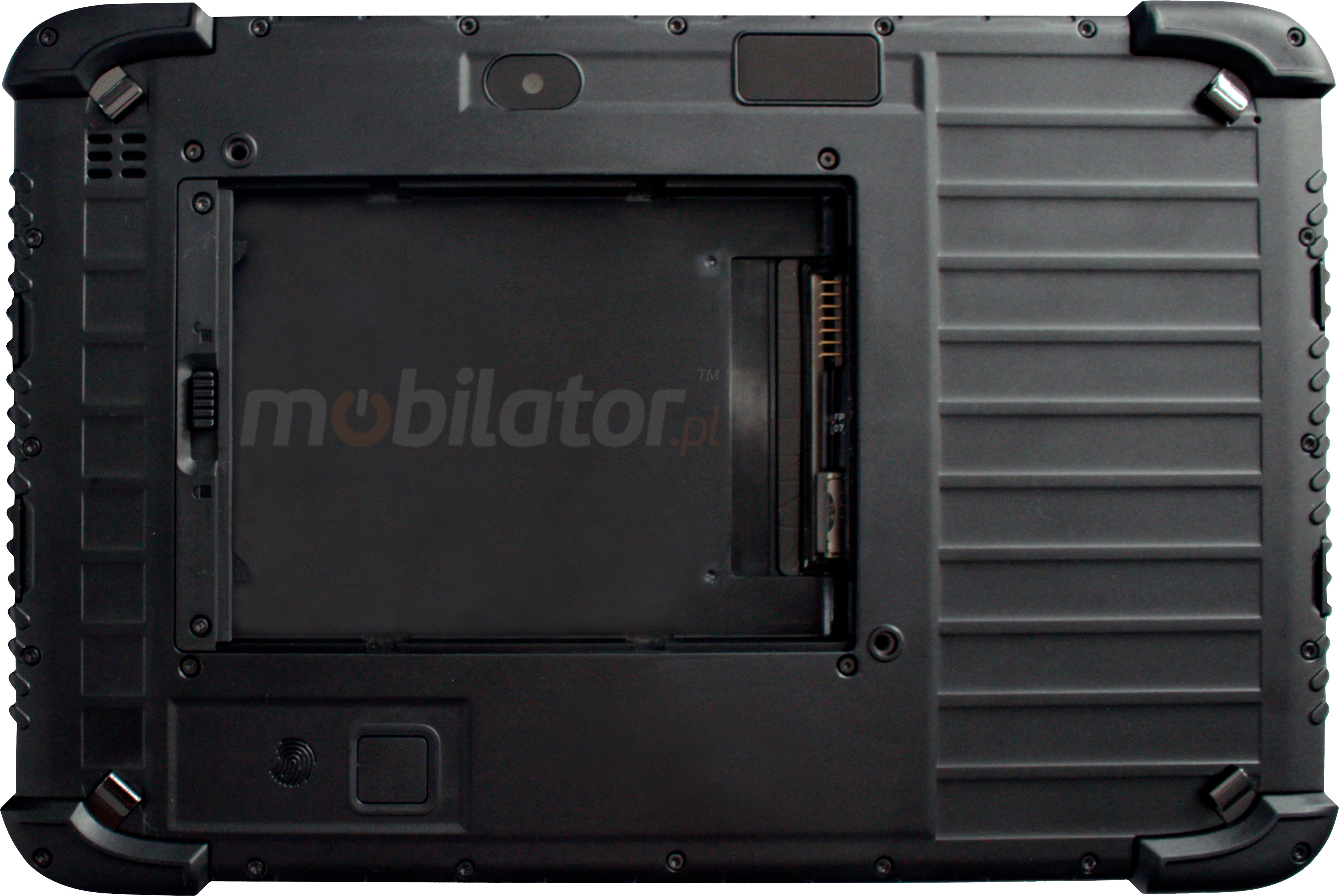 The tablet can be optionally equipped with a docking station, back straps, wrist strap, additional battery, car holder and car charger.