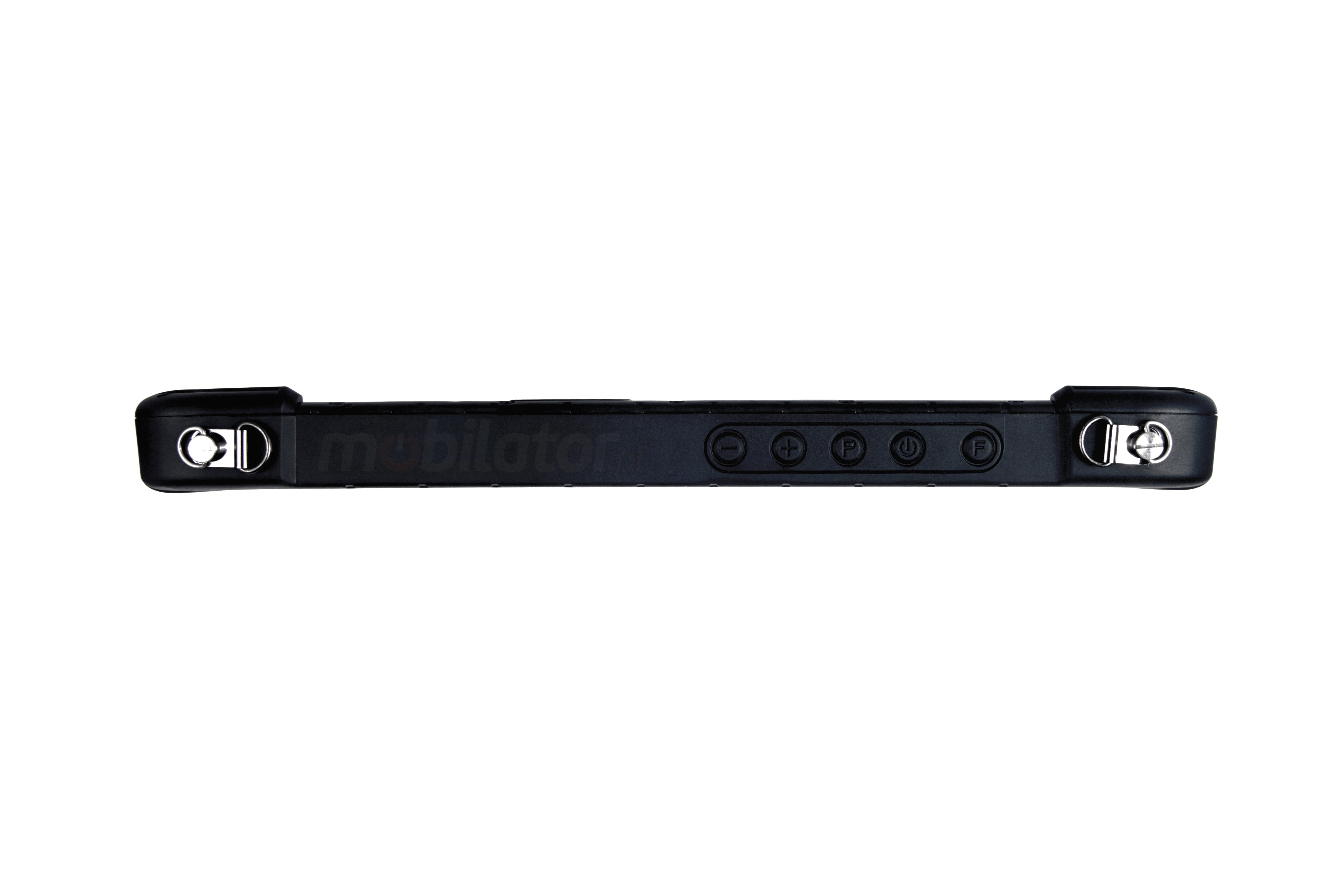 The tablet can be optionally equipped with a docking station, back straps, wrist strap, additional battery, car holder and car charger.