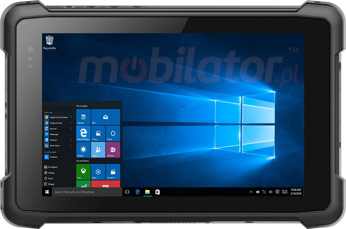 The dustproof industrial tablet uses a powerful and energy-saving Intel Cherry Trail Z8350 processor (4x 1.92 GHz). Inside, there are four cores that work together to process multiple tasks more efficiently. Shared cache, which is used in a multi-level hierarchy, is dynamically allocated to each processor core depending on the workload. This leads to a reduction in the average access time to main memory. Improved graphics card technology allows you to enjoy movies in full definition and HD quality. Low energy consumption guarantees long battery life.