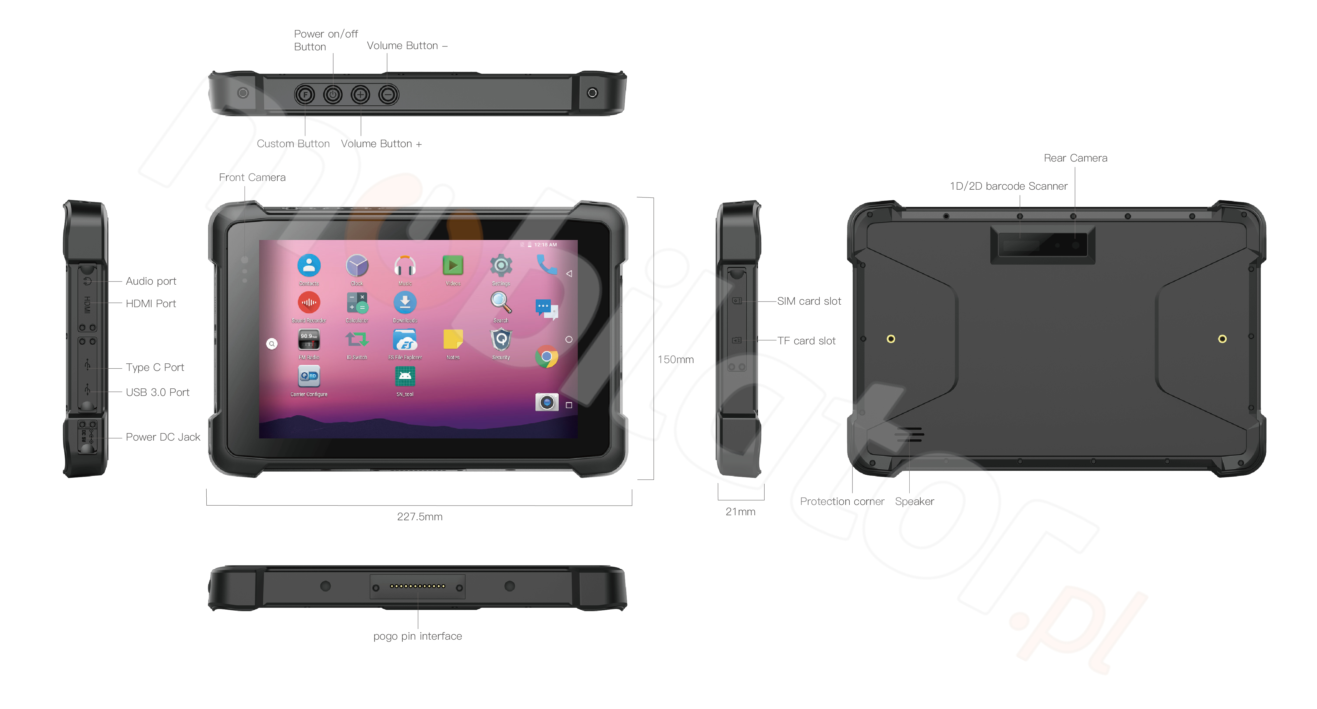 Emdoor Q81 is a modern, waterproof industrial tablet designed for extreme applications. It has a specially designed, reinforced construction that meets the requirements of IP65, which confirms the protection of the device against dust and water.