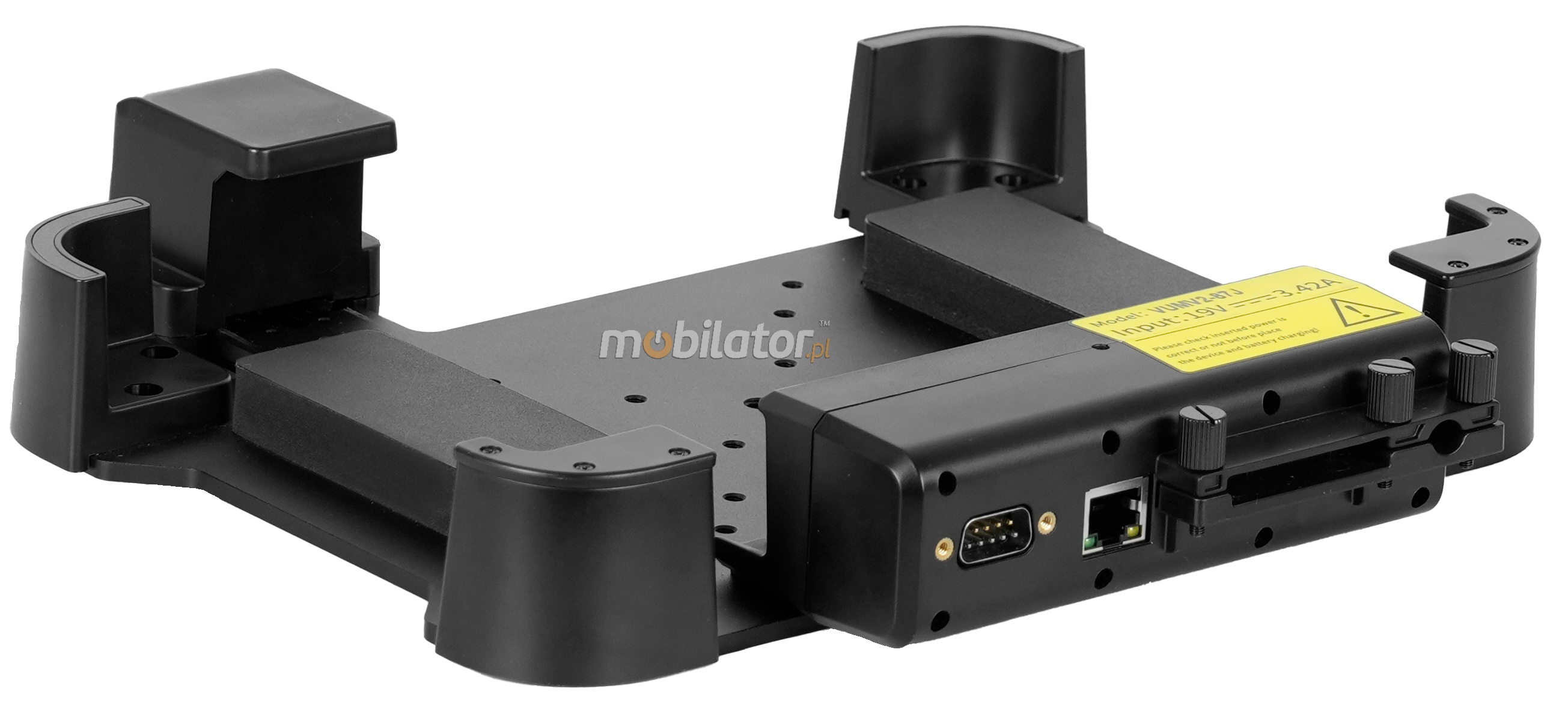 It is possible to use four different inputs/outputs in this holder: 1x RS232, 1x RJ-45 and 2x USB which are working after plugging DC.