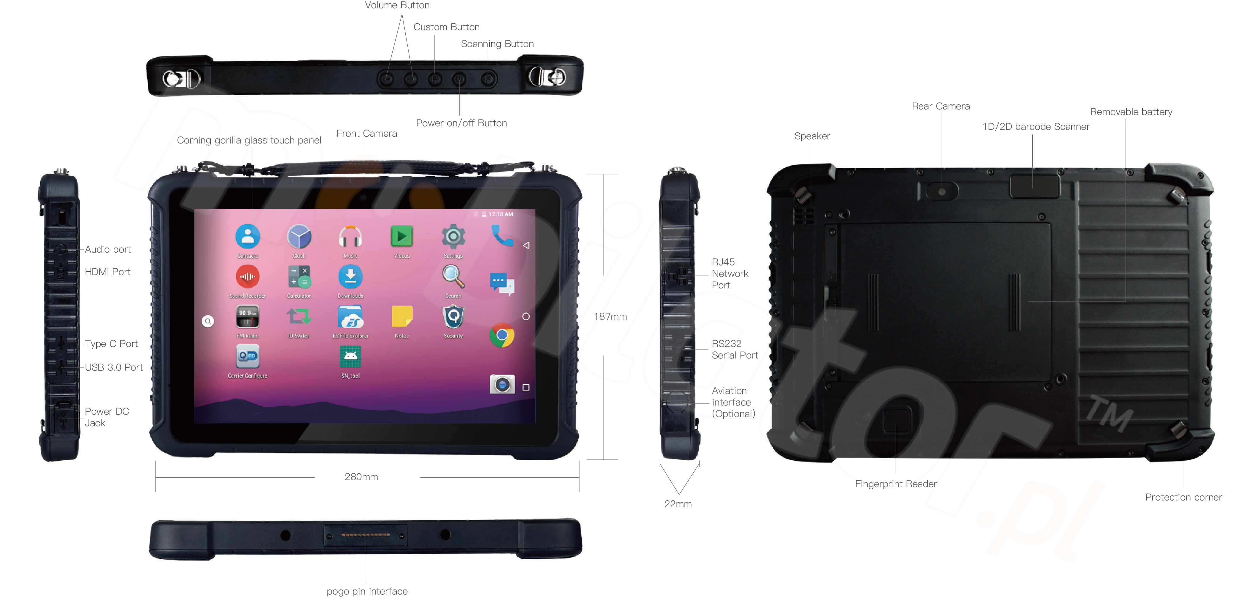 Emdoor Q16 is a modern, waterproof industrial tablet designed for extreme applications. It has a specially designed, reinforced construction that meets the requirements of IP65, which confirms the protection of the device against dust and water.