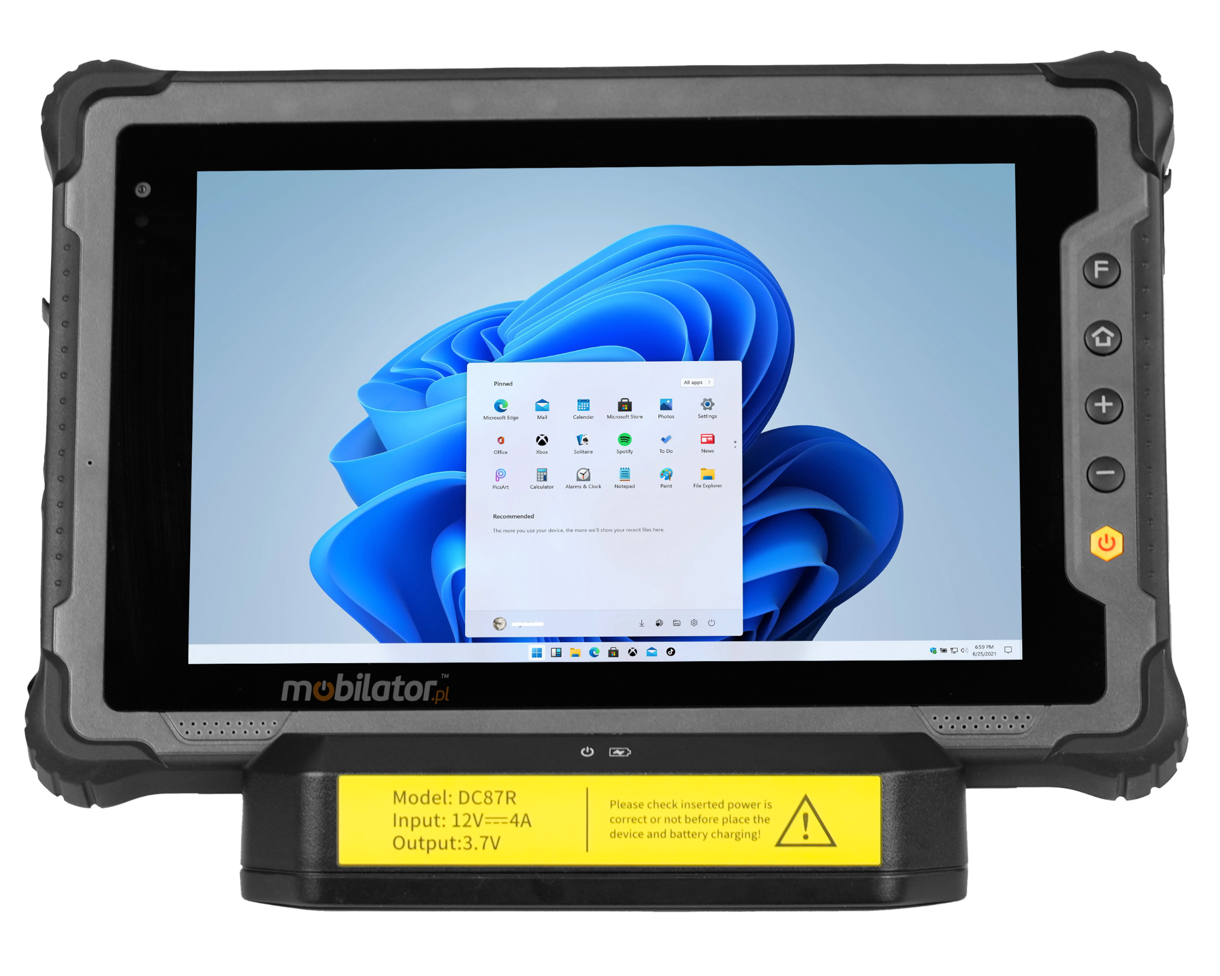 The Emdoor Q885M industrial tablet docking station enables fast and safe charging and synchronization of the device. Thanks to the dock design, the tablet can be connected in one move, which facilitates everyday use in the office or at the workplace. The station's power supply is 19V DC. The product is dedicated to service, industrial and technical environments.