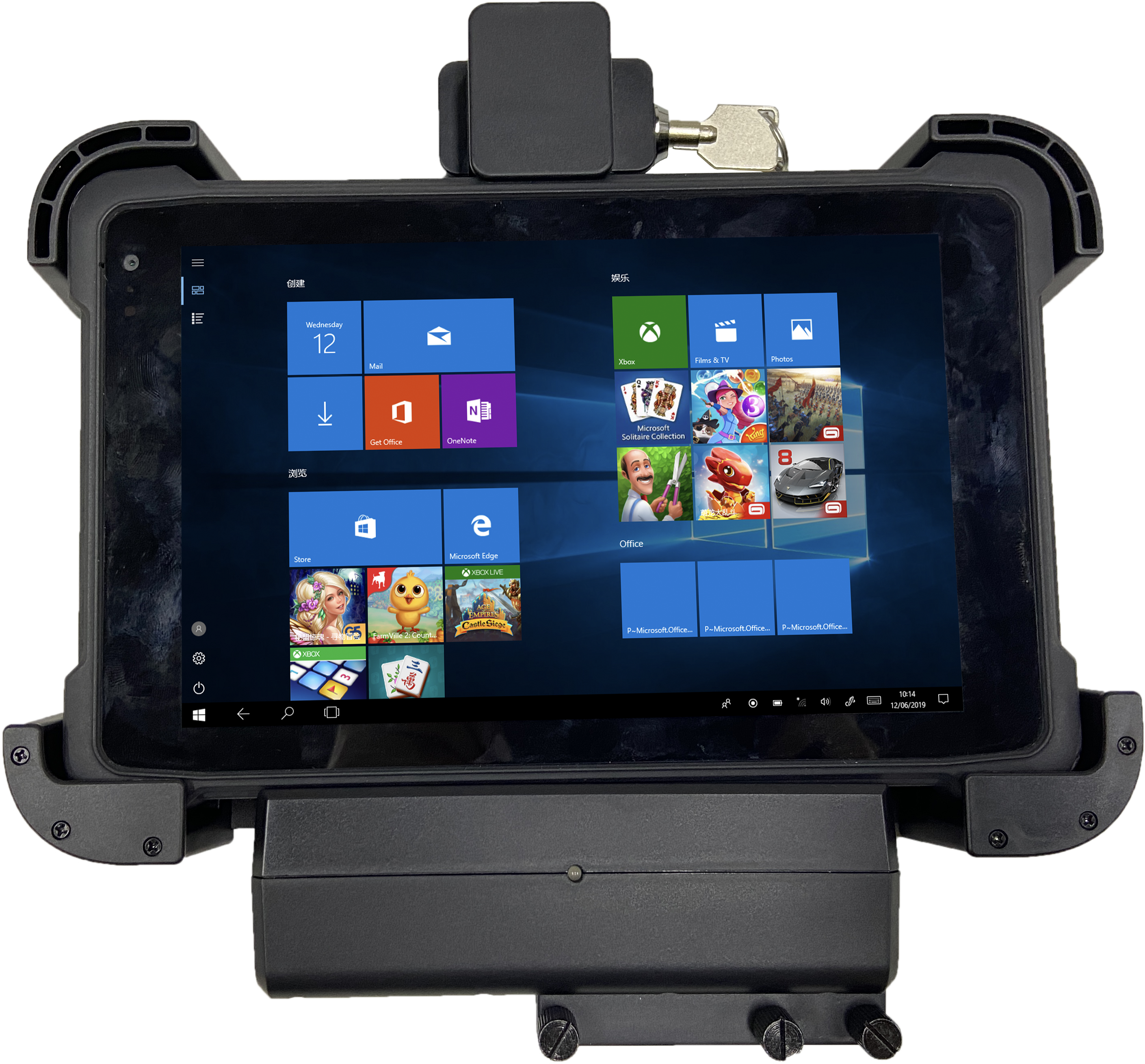 The dedicated Emdoor car holder allows for comfortable and safe use of the industrial tablet in such vehicles as: passenger car, off-road car, fire engine, bus, tram, train, trucks and military combat vehicle.