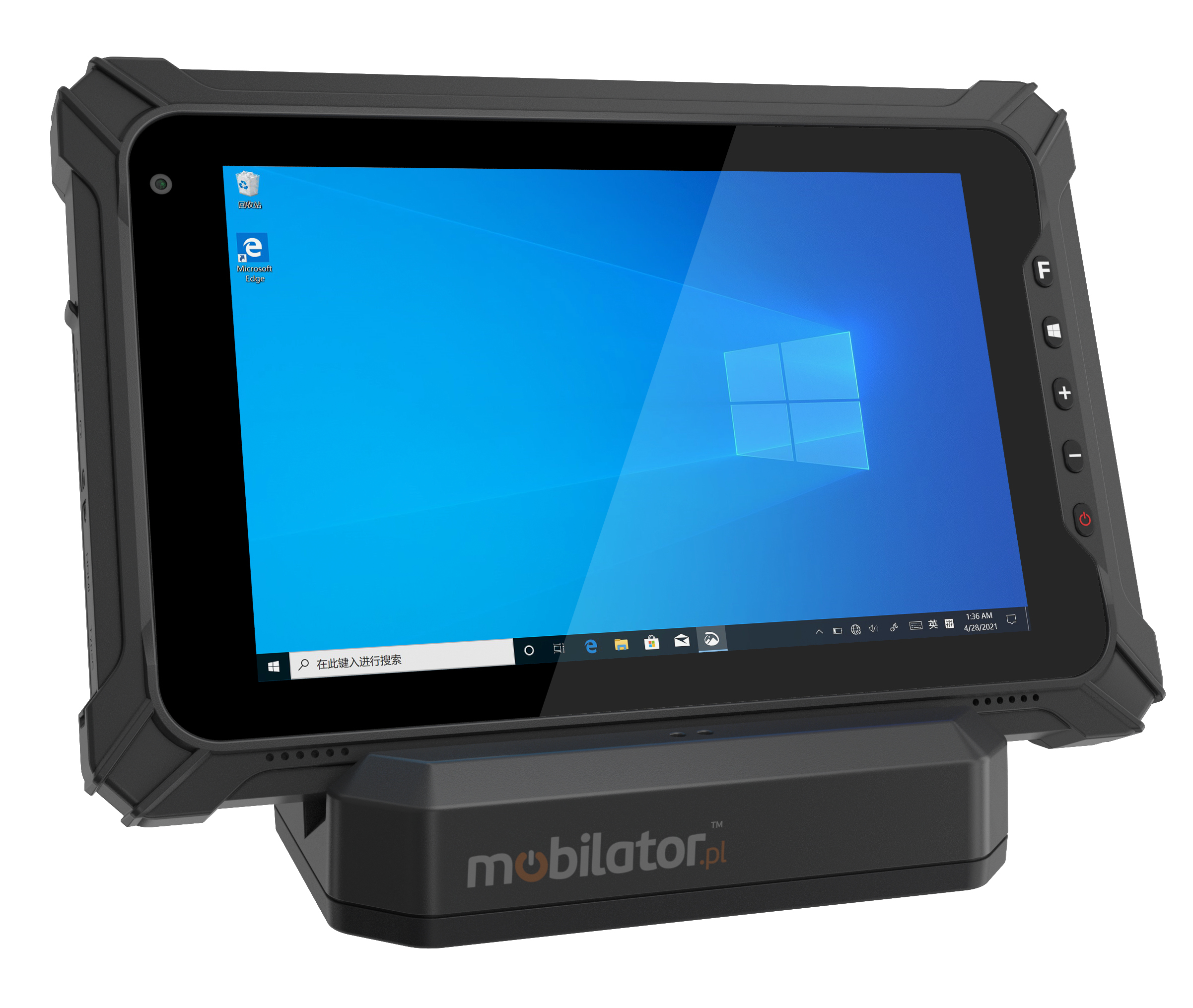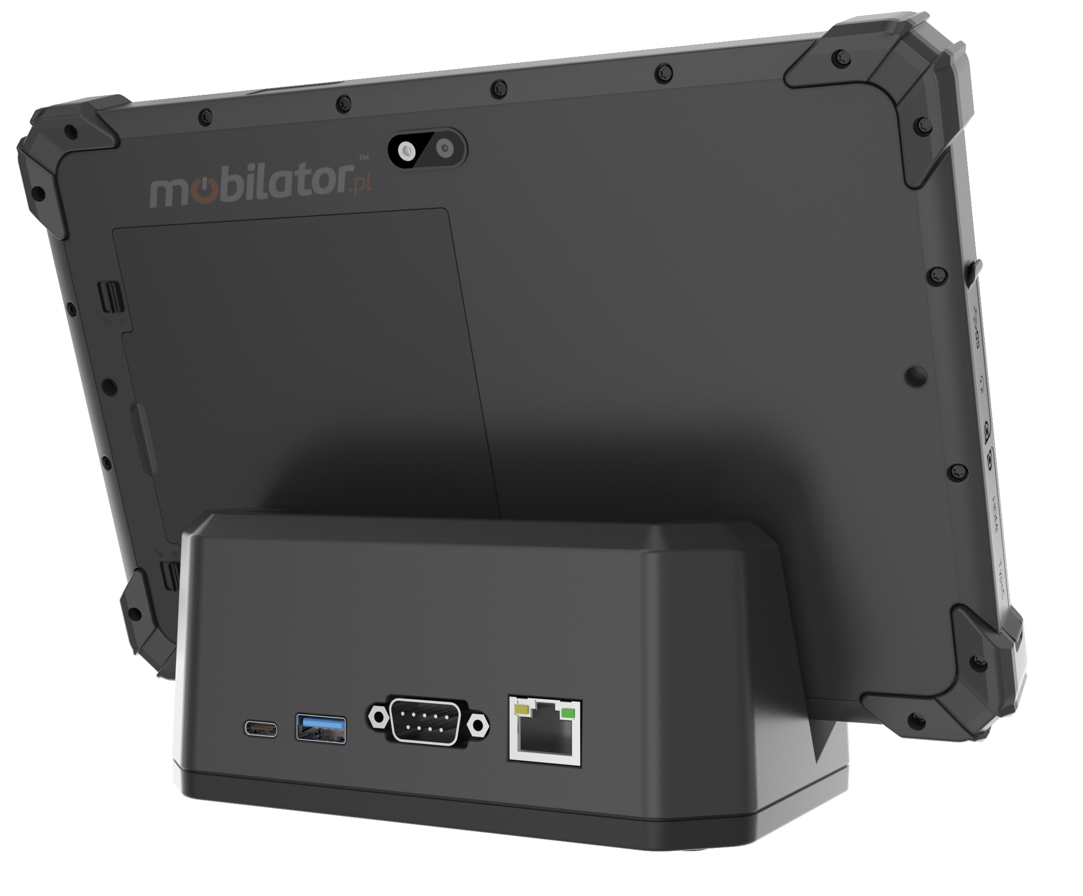 The Emdoor T87X industrial tablet docking station enables fast and safe charging and synchronization of the device. Thanks to the dock design, the tablet can be connected in one move, which facilitates everyday use in the office or at the workplace. The station's power supply is 19V DC. The product is dedicated to service, industrial and technical environments.