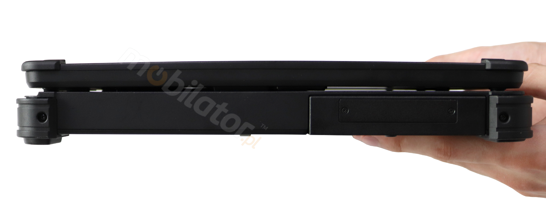 The industrial Emdoor Notebook uses a proven cooling system, based only on solid elements, mainly heat sinks. The system uses the phenomenon of metals passing thermal energy into the environment - there are no additional moving elements in the form of eg fans. This solution ensures noiseless operation, lower failure rate and greater protection against dust and other dirt while reducing the amount of energy consumed.