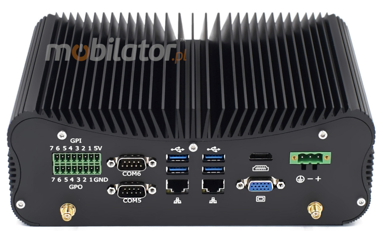 The industrial Mini PC uses a proven cooling system, based only on solid elements, mainly heat sinks. The system uses the phenomenon of metals passing thermal energy into the environment - there are no additional moving elements in the form of eg fans. This solution ensures noiseless operation, lower failure rate and greater protection against dust and other dirt while reducing the amount of energy consumed.
