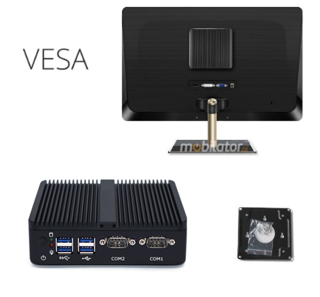 Mini PC is an ideal tool to support us in the implementation of many activities in the field of trade, small dimensions increase the possibility of its adaptation to activities such as issuing invoices or preparing documentation, which in turn allows us to convenient and optimal sales management.The VESA holder mounted to the housing provides many installation options, eg in stores (at the cash register, under the desktop, behind the LCD / LED monitor), in factory halls or in a delivery truck.