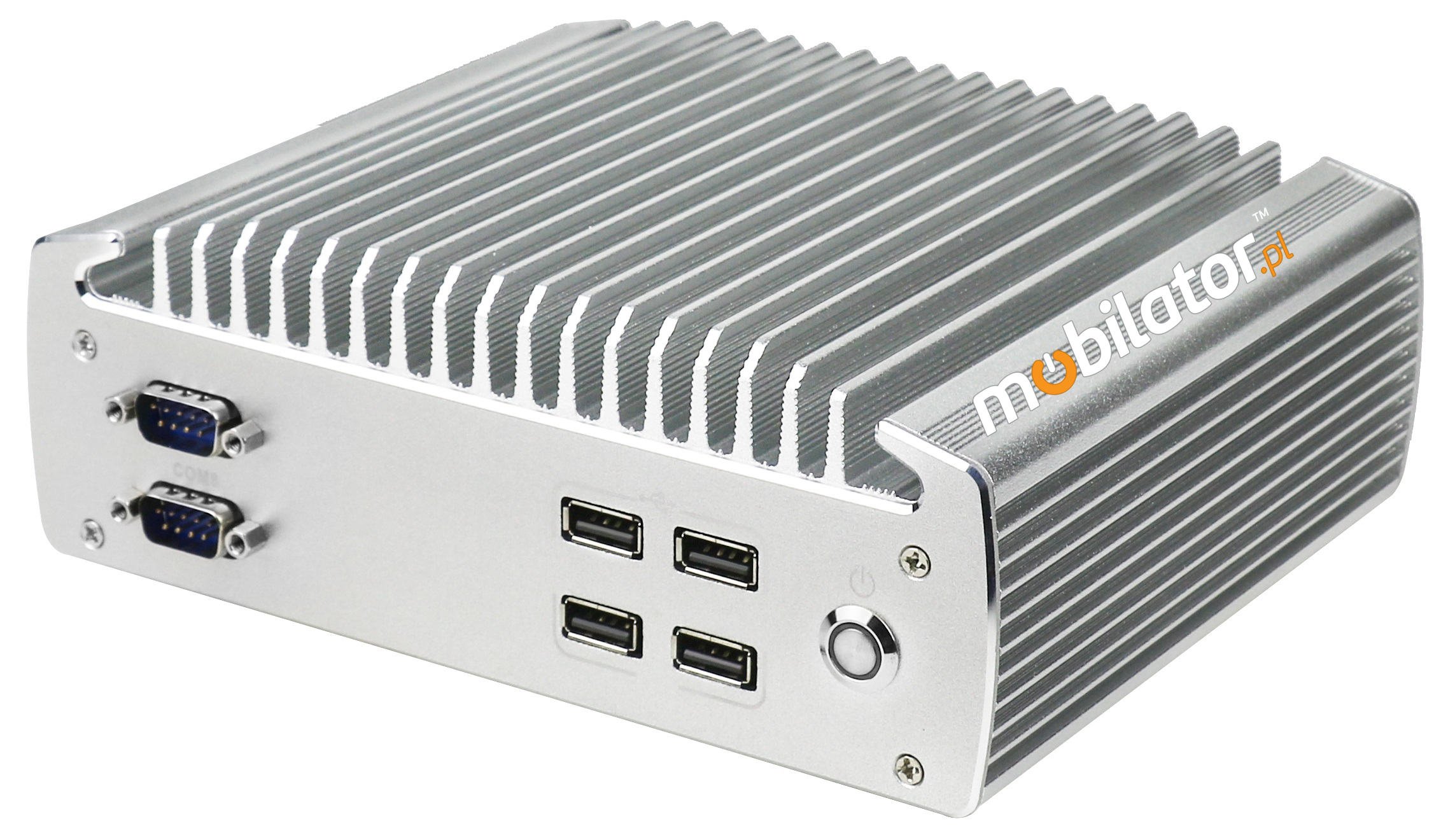 The industrial Mini PC uses a proven cooling system, based only on solid elements, mainly heat sinks.The system uses the phenomenon of metals passing thermal energy into the environment - there are no additional moving elements in the form of eg fans.This solution ensures noiseless operation, lower failure rate and greater protection against dust and other dirt while reducing the amount of energy consumed.