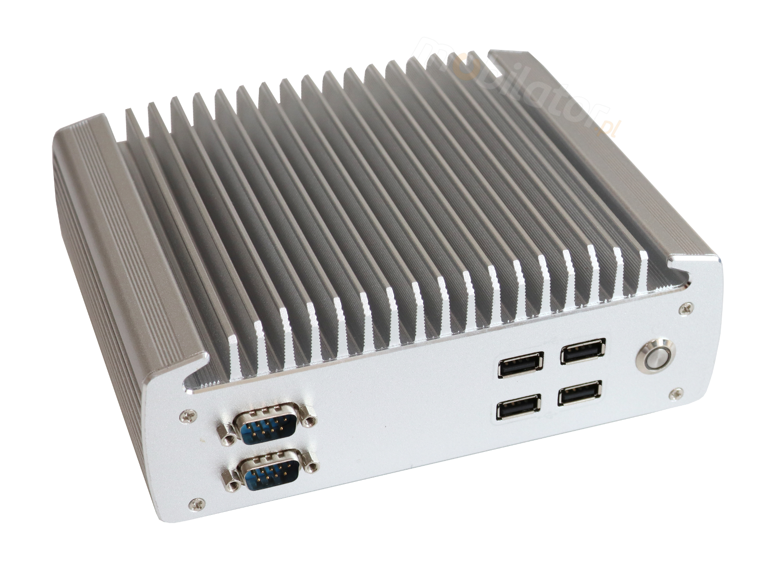 The industrial Mini PC uses a proven cooling system, based only on solid elements, mainly heat sinks.The system uses the phenomenon of metals passing thermal energy into the environment - there are no additional moving elements in the form of eg fans.This solution ensures noiseless operation, lower failure rate and greater protection against dust and other dirt while reducing the amount of energy consumed.