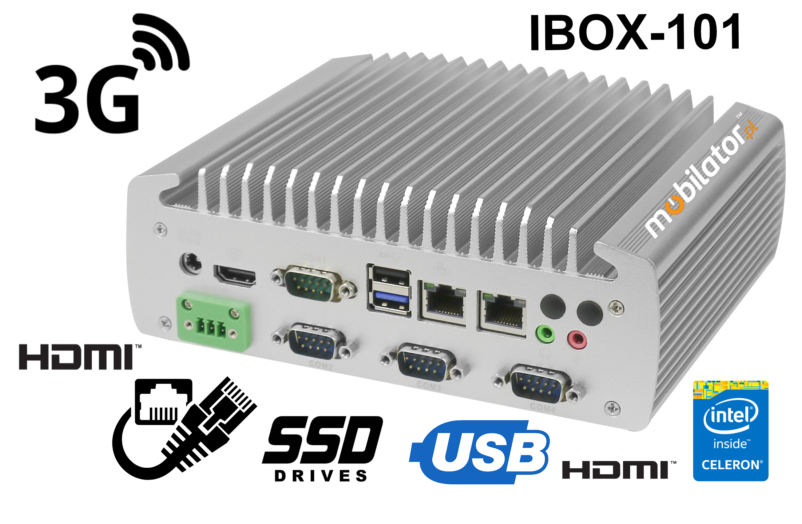 Small dimensions industrial computers excel in environments where dust, dirt and moisture predominate. They are ideal for applications requiring quiet operation. Small and reliable MiniPC use heat-pipe technology and aluminum fins for passive cooling. The robust mini Industrial Computer IBOX 101 is a device designed for all industrial and non-continuous applications requiring continuous operation - 24 hours, 7 days a week.