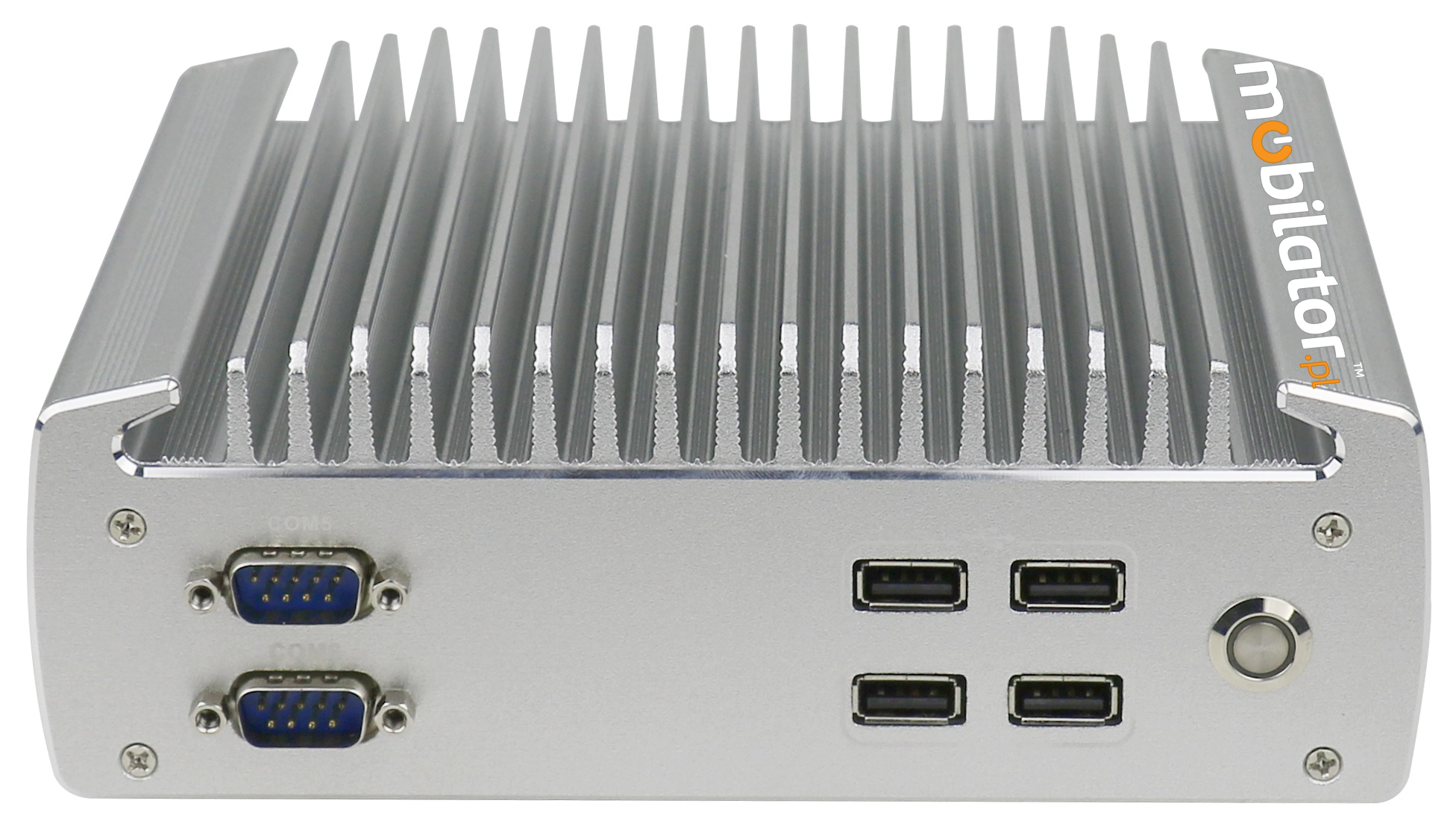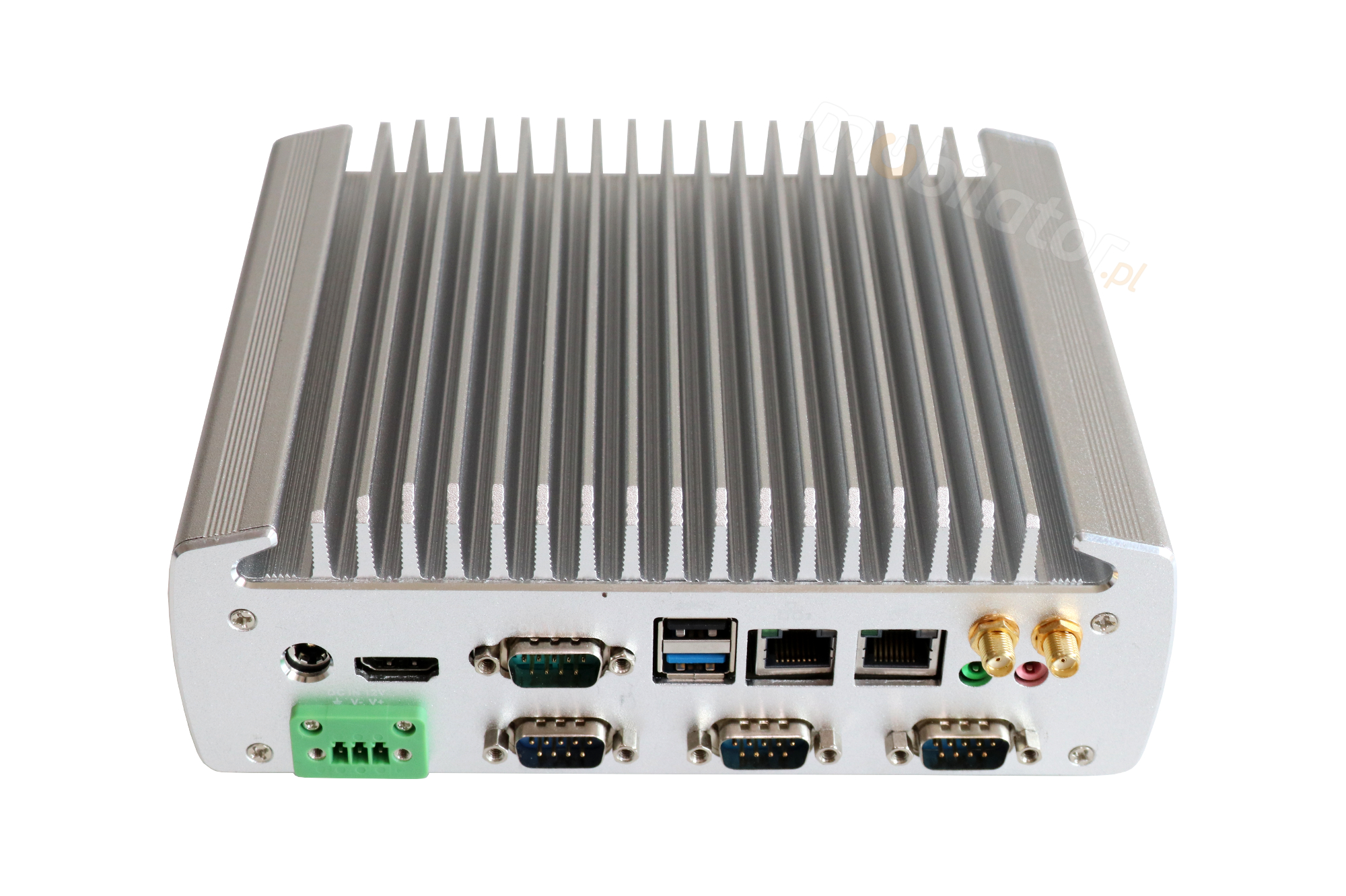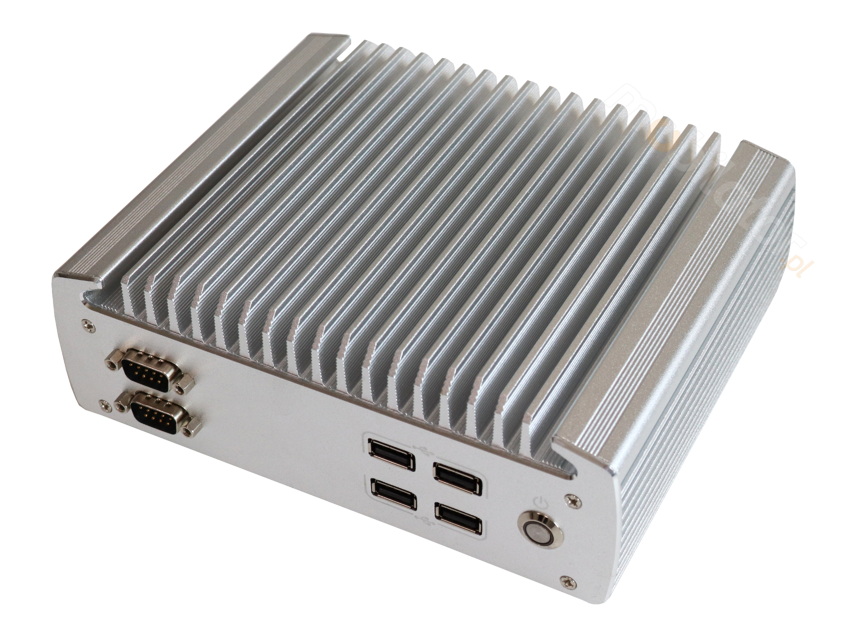 The industrial Mini PC uses a proven cooling system, based only on solid elements, mainly heat sinks.The system uses the phenomenon of metals passing thermal energy into the environment - there are no additional moving elements in the form of eg fans.This solution ensures noiseless operation, lower failure rate and greater protection against dust and other dirt while reducing the amount of energy consumed.