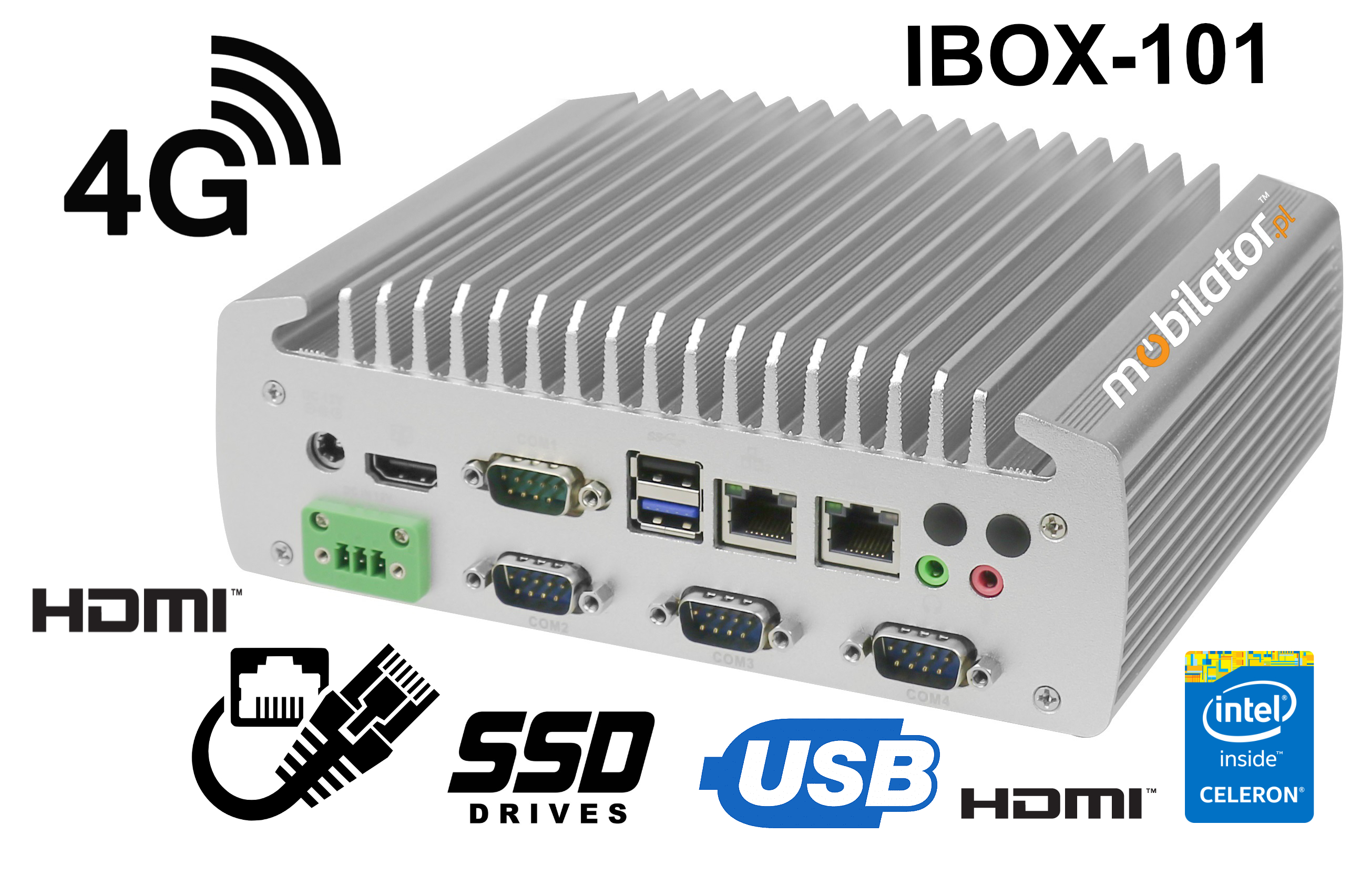 Small dimensions industrial computers excel in environments where dust, dirt and moisture predominate. They are ideal for applications requiring quiet operation. Small and reliable MiniPC use heat-pipe technology and aluminum fins for passive cooling. The robust mini Industrial Computer IBOX 101 is a device designed for all industrial and non-continuous applications requiring continuous operation - 24 hours, 7 days a week.