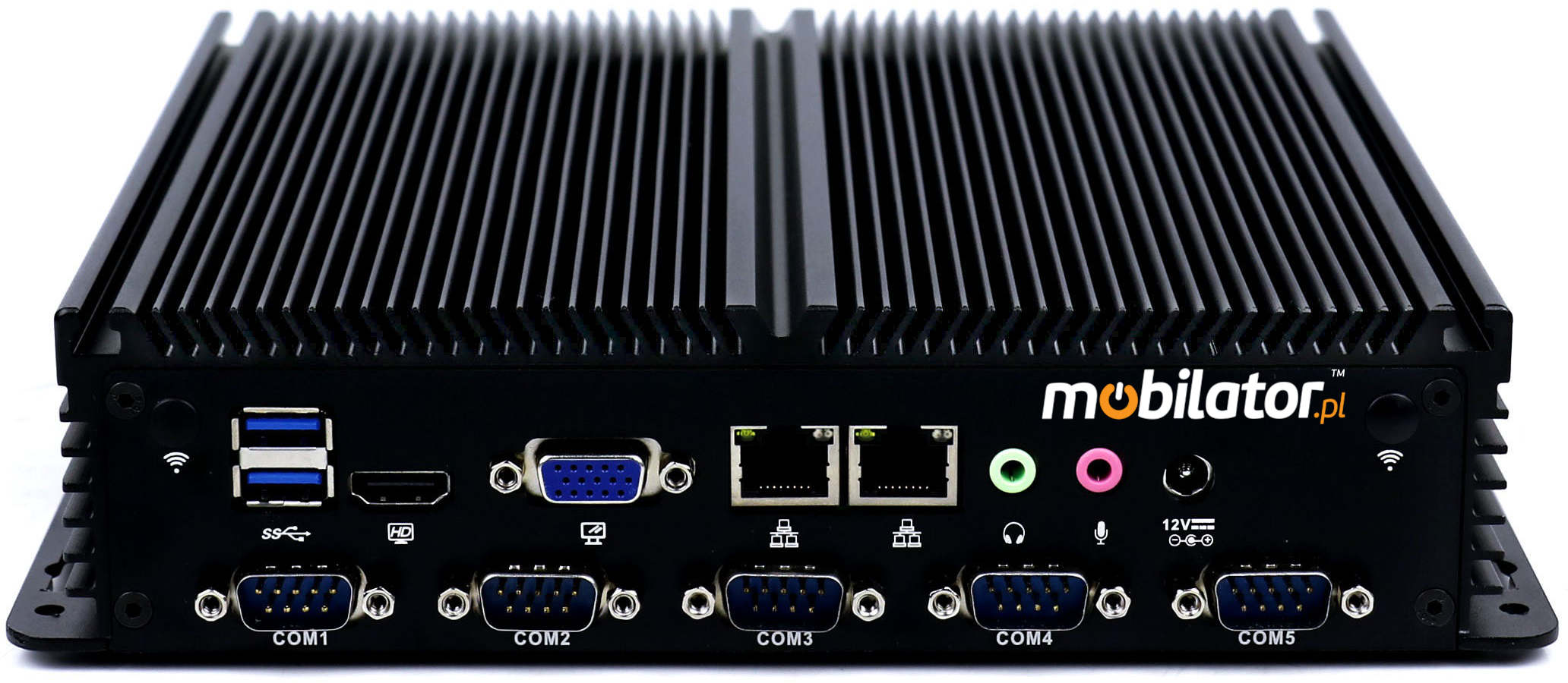 The industrial Mini PC uses a proven cooling system, based only on solid elements, mainly heat sinks.The system uses the phenomenon of metals passing thermal energy into the environment - there are no additional moving elements in the form of eg fans.This solution ensures noiseless operation, lower failure rate and greater protection against dust and other dirt while reducing the amount of energy consumed.