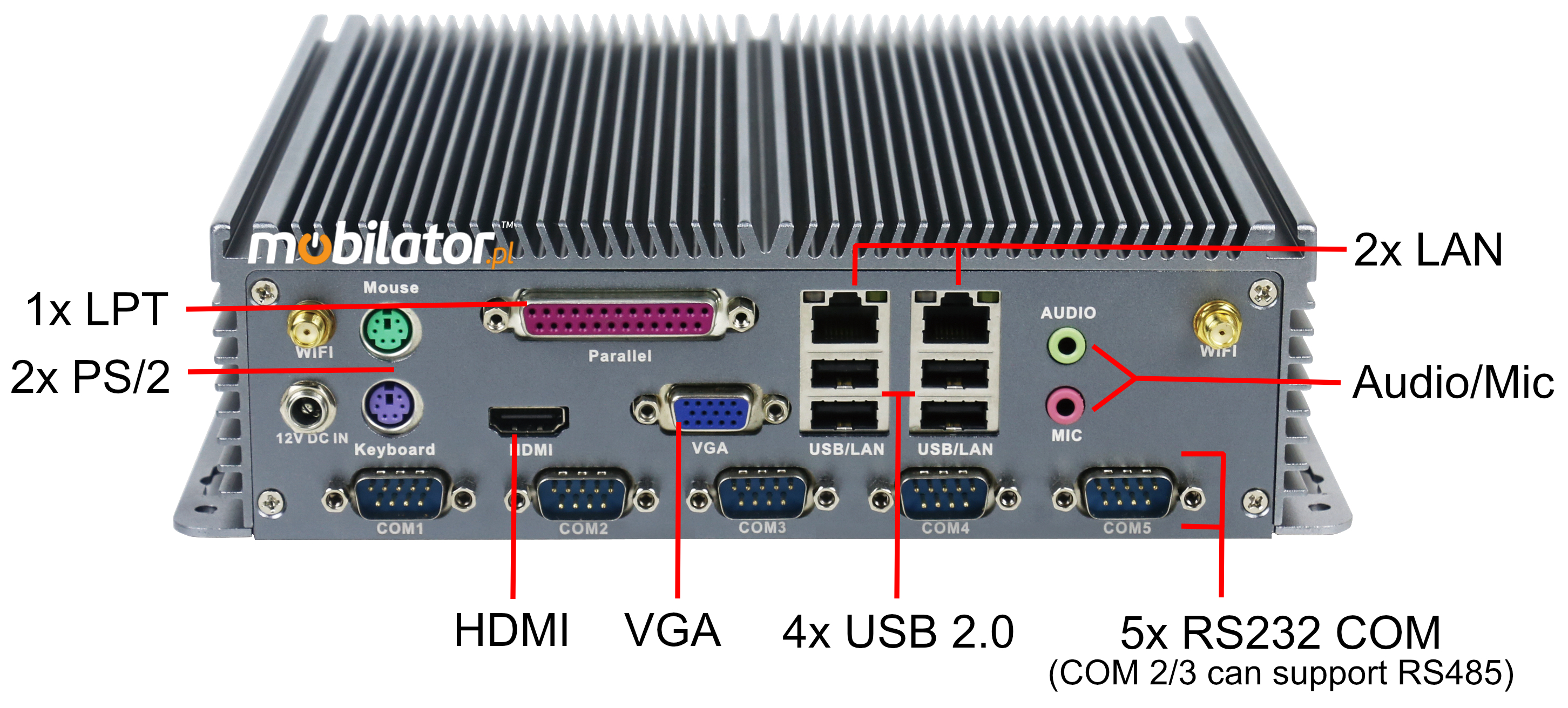 5x RS232 COM (COM2/3 can support RS485)