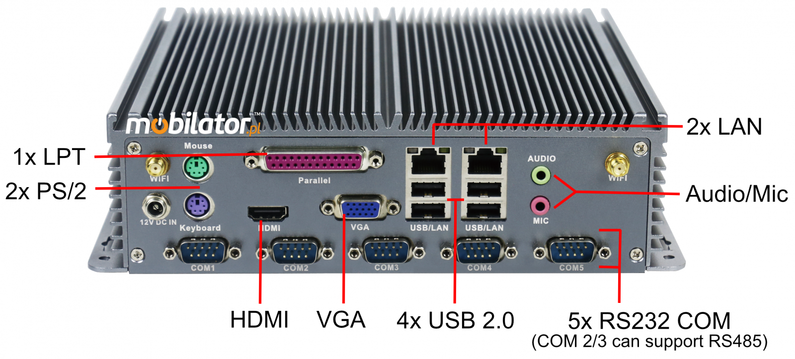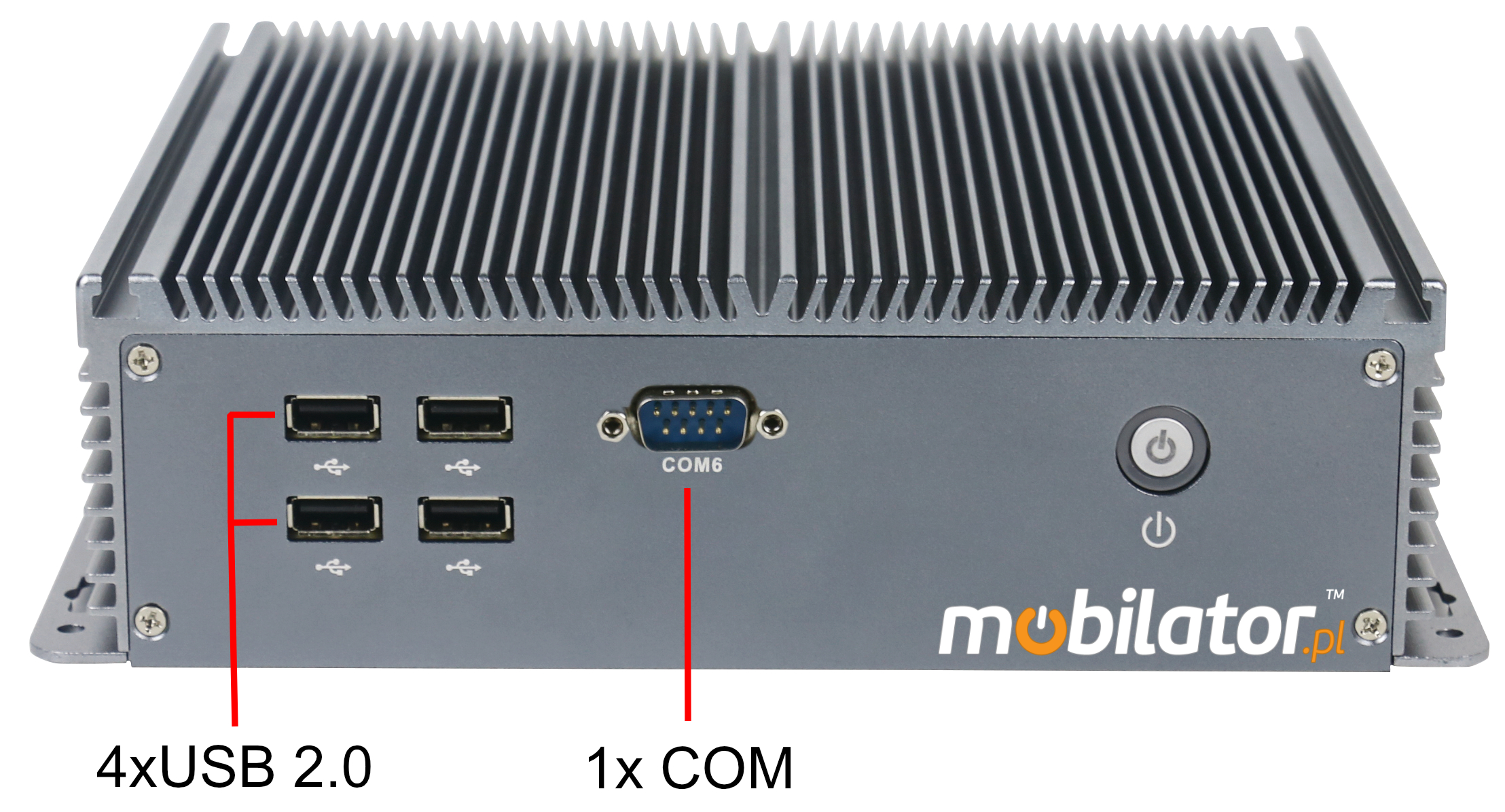 The industrial Mini PC uses a proven cooling system, based only on solid elements, mainly heat sinks.The system uses the phenomenon of metals passing thermal energy into the environment - there are no additional moving elements in the form of eg fans.This solution ensures noiseless operation, lower failure rate and greater protection against dust and other dirt while reducing the amount of energy consumed.