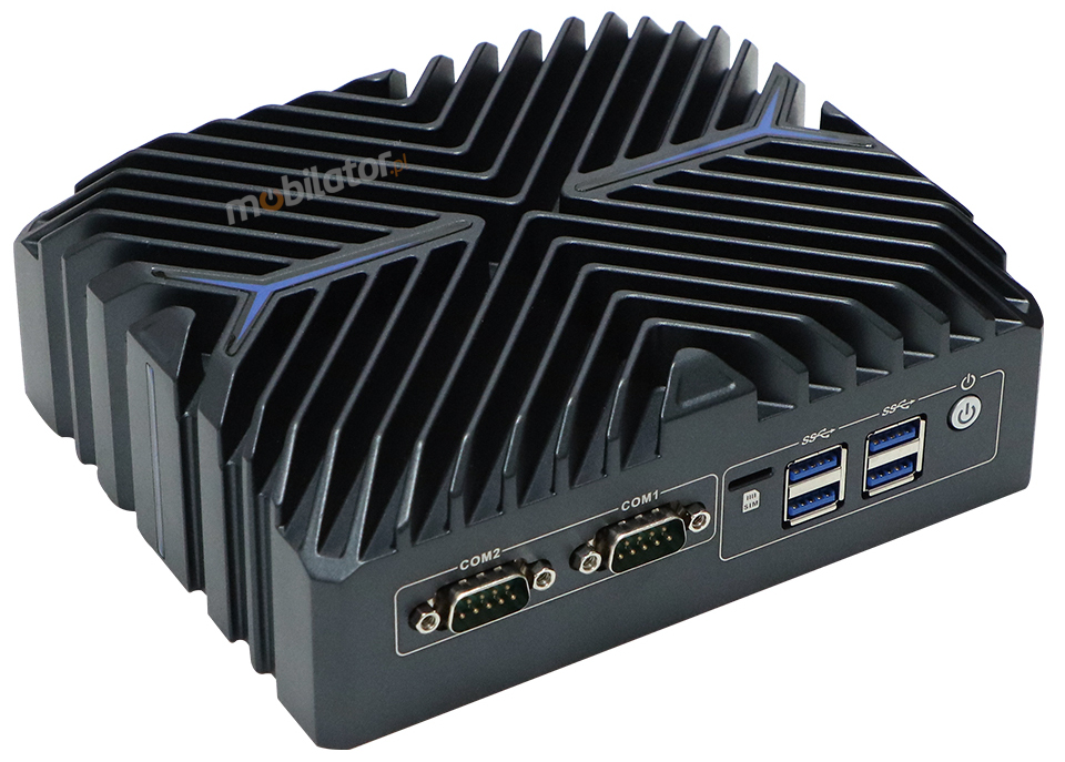 The industrial Mini PC uses a proven cooling system, based only on solid elements, mainly heat sinks. The system uses the phenomenon of metals passing thermal energy into the environment - there are no additional moving elements in the form of eg fans. This solution ensures noiseless operation, lower failure rate and greater protection against dust and other dirt while reducing the amount of energy consumed.r.