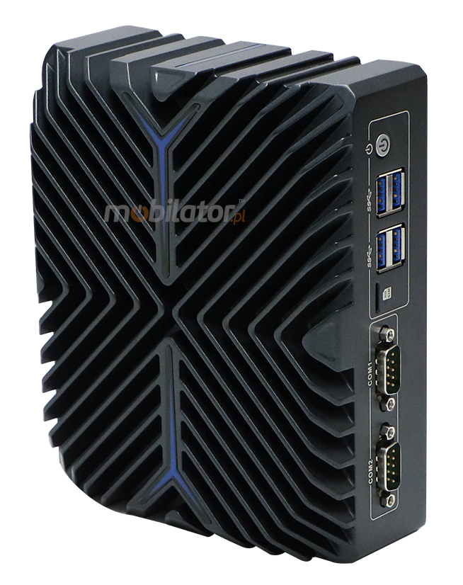 The industrial Mini PC uses a proven cooling system, based only on solid elements, mainly heat sinks. The system uses the phenomenon of metals passing thermal energy into the environment - there are no additional moving elements in the form of eg fans. This solution ensures noiseless operation, lower failure rate and greater protection against dust and other dirt while reducing the amount of energy consumed.r.