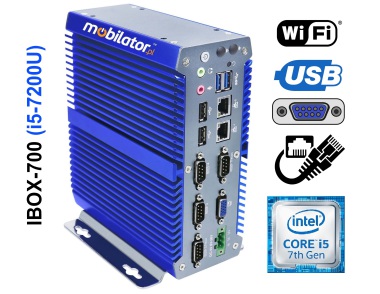 Small dimensions industrial computers excel in environments where dust, dirt and moisture predominate. They are ideal for applications requiring quiet operation. Small and reliable MiniPC use heat-pipe technology and aluminum fins for passive cooling. The robust mini Industrial Computer IBOX-700 is a device designed for all industrial and non-continuous applications requiring continuous operation - 24 hours, 7 days a week.