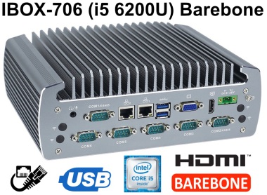 Small dimensions industrial computers excel in environments where dust, dirt and moisture predominate. They are ideal for applications requiring quiet operation. Small and reliable MiniPC use heat-pipe technology and aluminum fins for passive cooling. The robust mini Industrial Computer IBOX-706 is a device designed for all industrial and non-continuous applications requiring continuous operation - 24 hours, 7 days a week.