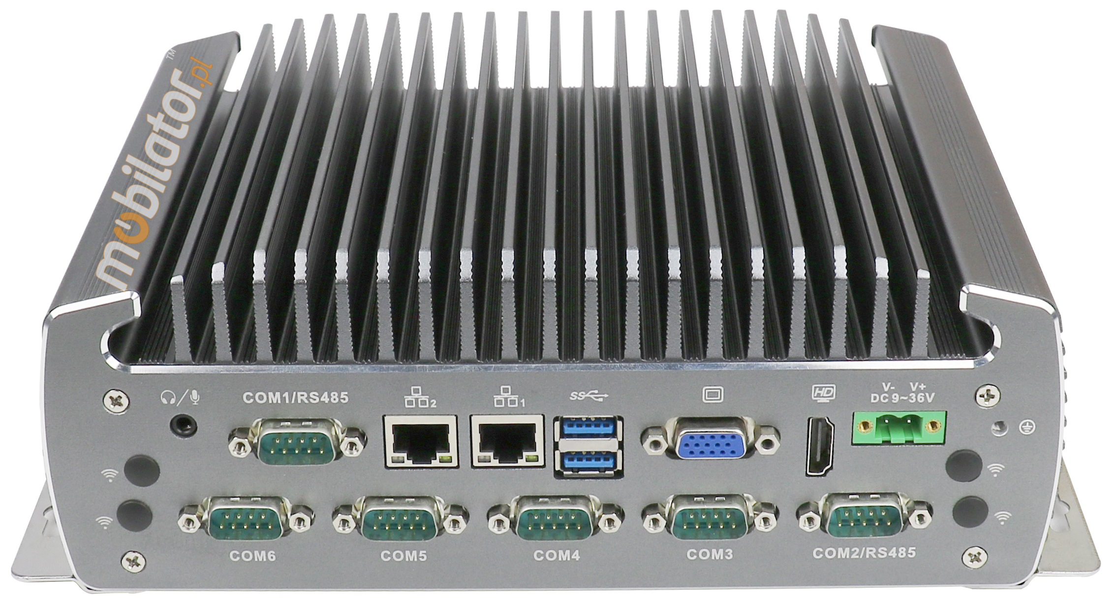 The industrial Mini PC uses a proven cooling system, based only on solid elements, mainly heat sinks.The system uses the phenomenon of metals passing thermal energy into the environment - there are no additional moving elements in the form of eg fans.This solution ensures noiseless operation, lower failure rate and greater protection against dust and other dirt while reducing the amount of energy consumed.