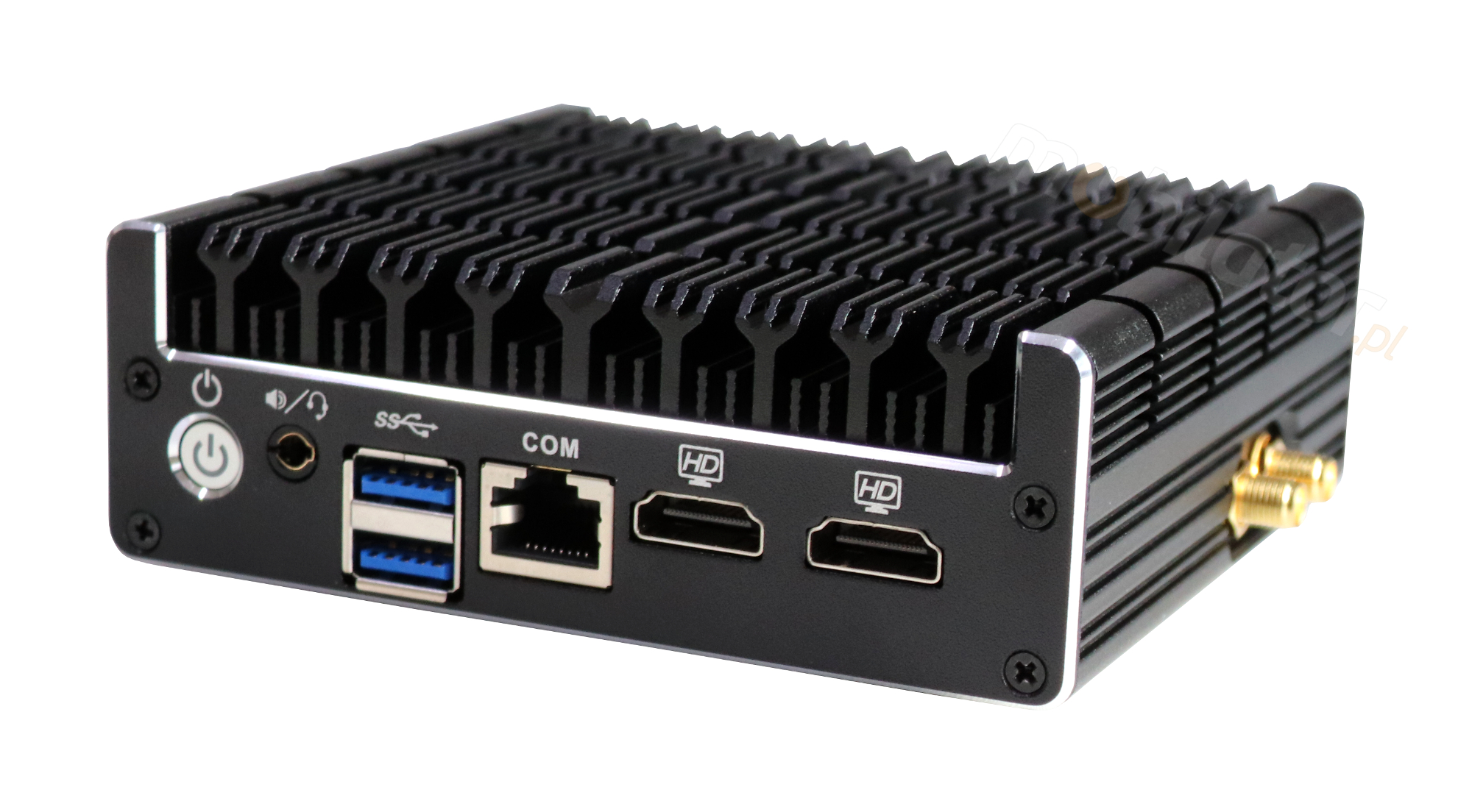 The industrial Mini PC uses a proven cooling system, based only on solid elements, mainly heat sinks. The system uses the phenomenon of metals passing thermal energy into the environment - there are no additional moving elements in the form of eg fans. This solution ensures noiseless operation, lower failure rate and greater protection against dust and other dirt while reducing the amount of energy consumed.