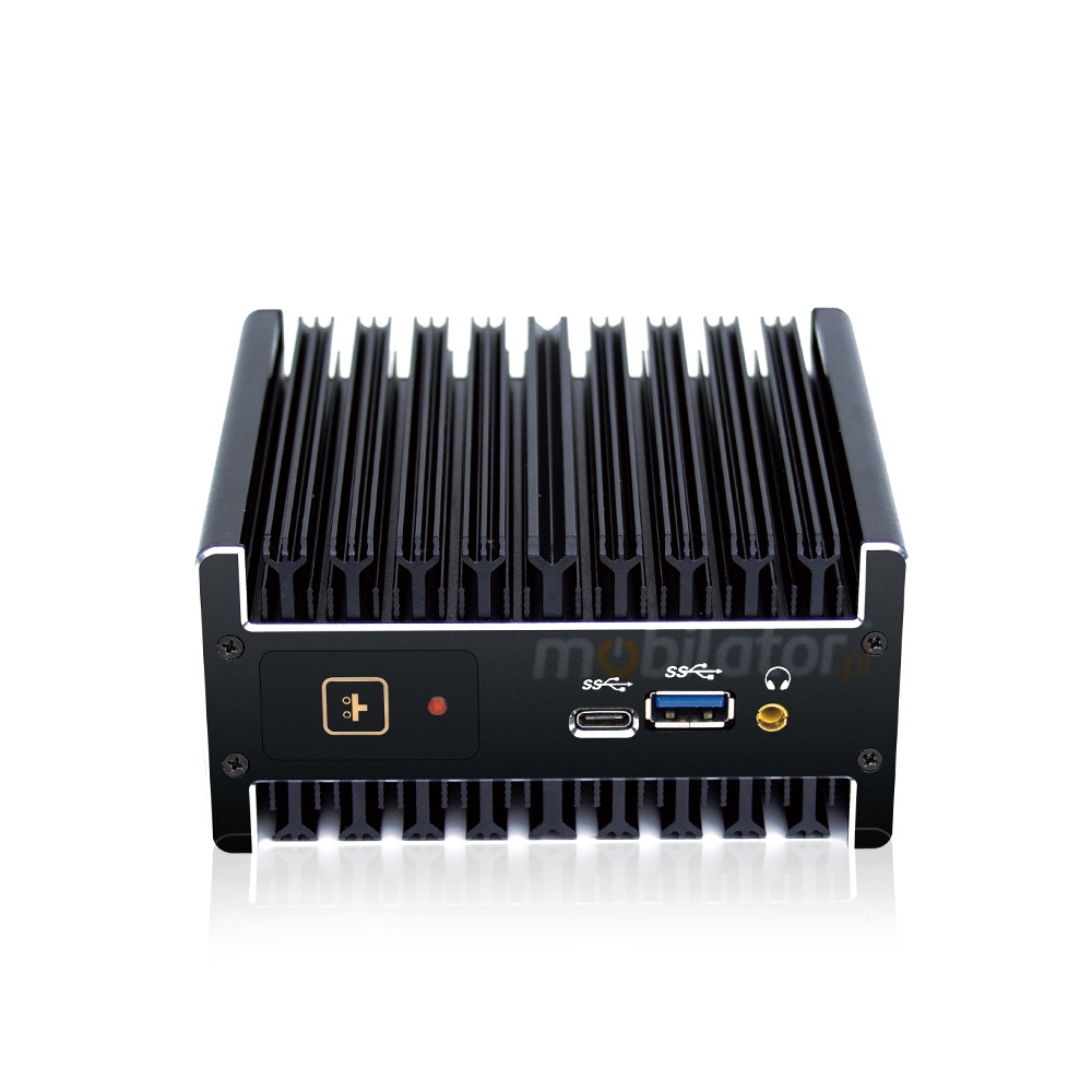 The industrial Mini PC uses a proven cooling system, based only on solid elements, mainly heat sinks.The system uses the phenomenon of metals passing thermal energy into the environment - there are no additional moving elements in the form of eg fans.This solution ensures noiseless operation, lower failure rate and greater protection against dust and other dirt while reducing the amount of energy consumed.