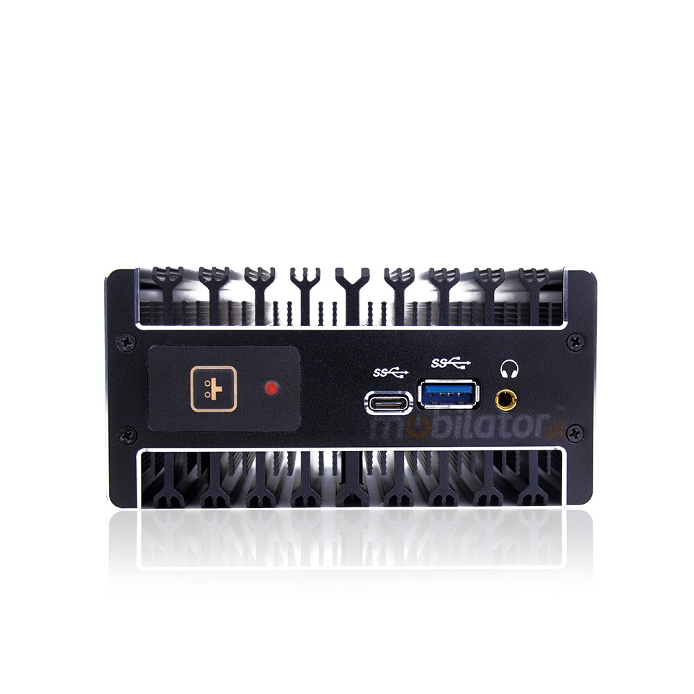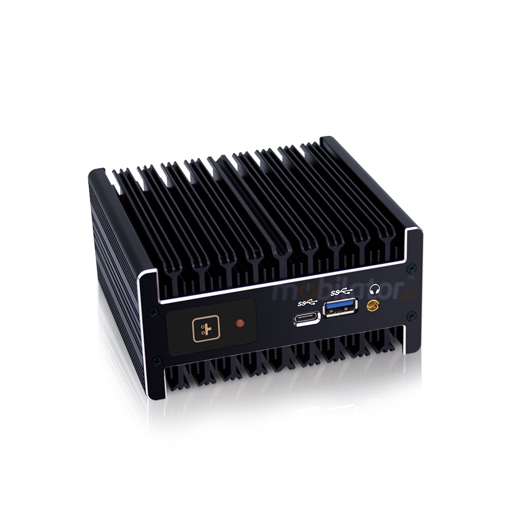 The industrial Mini PC uses a proven cooling system, based only on solid elements, mainly heat sinks.The system uses the phenomenon of metals passing thermal energy into the environment - there are no additional moving elements in the form of eg fans.This solution ensures noiseless operation, lower failure rate and greater protection against dust and other dirt while reducing the amount of energy consumed.