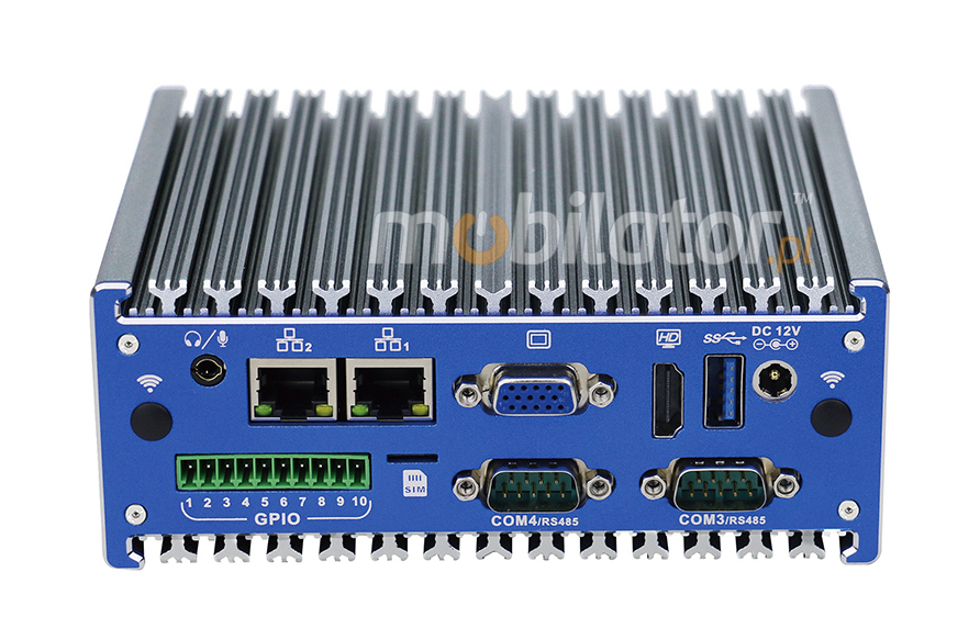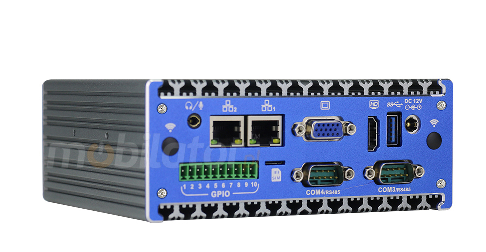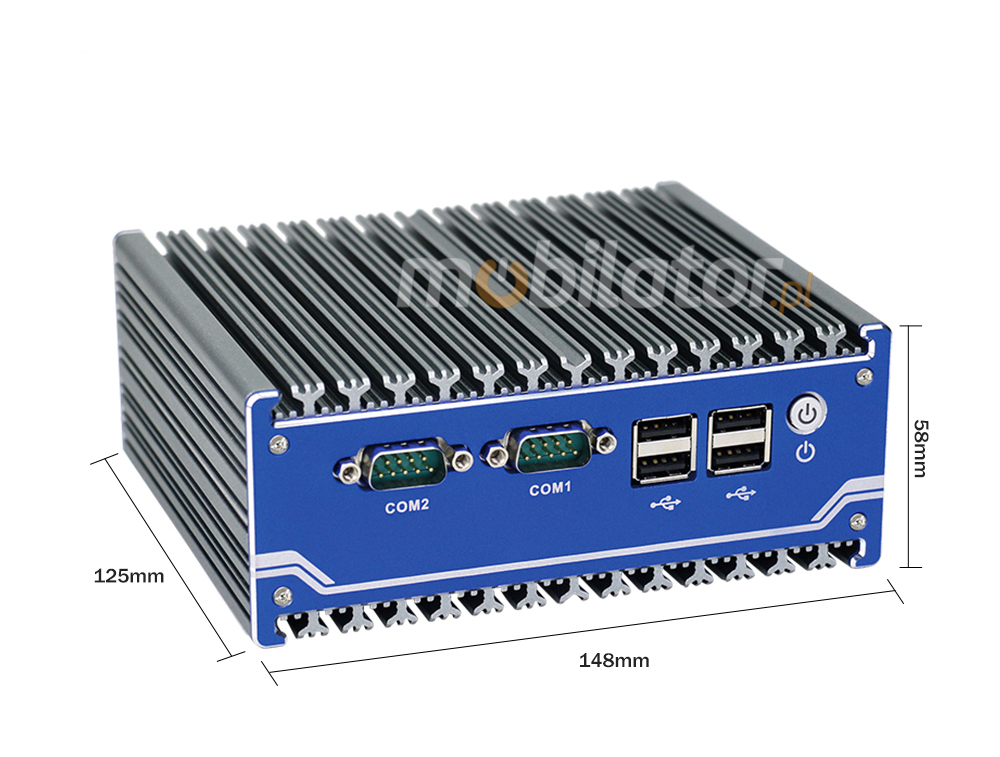 The industrial Mini PC uses a proven cooling system, based only on solid elements, mainly heat sinks.The system uses the phenomenon of metals passing thermal energy into the environment - there are no additional moving elements in the form of eg fans.This solution ensures noiseless operation, lower failure rate and greater protection against dust and other dirt while reducing the amount of energy consumed.