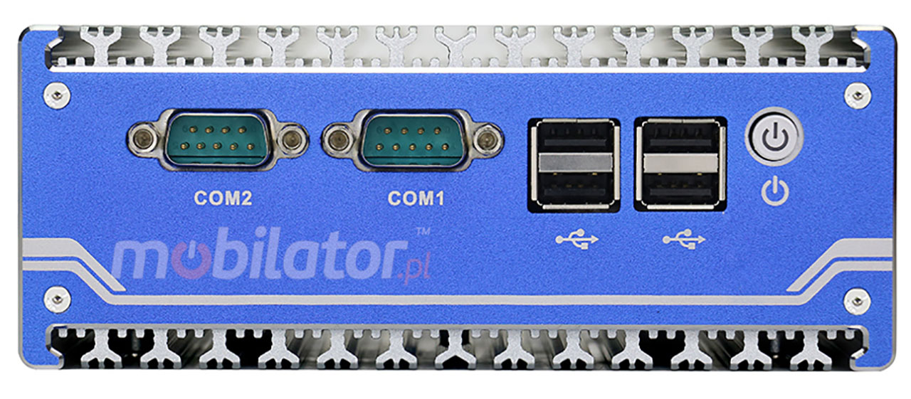 The industrial Mini PC uses a proven cooling system, based only on solid elements, mainly heat sinks. The system uses the phenomenon of metals passing thermal energy into the environment - there are no additional moving elements in the form of eg fans. This solution ensures noiseless operation, lower failure rate and greater protection against dust and other dirt while reducing the amount of energy consumed.