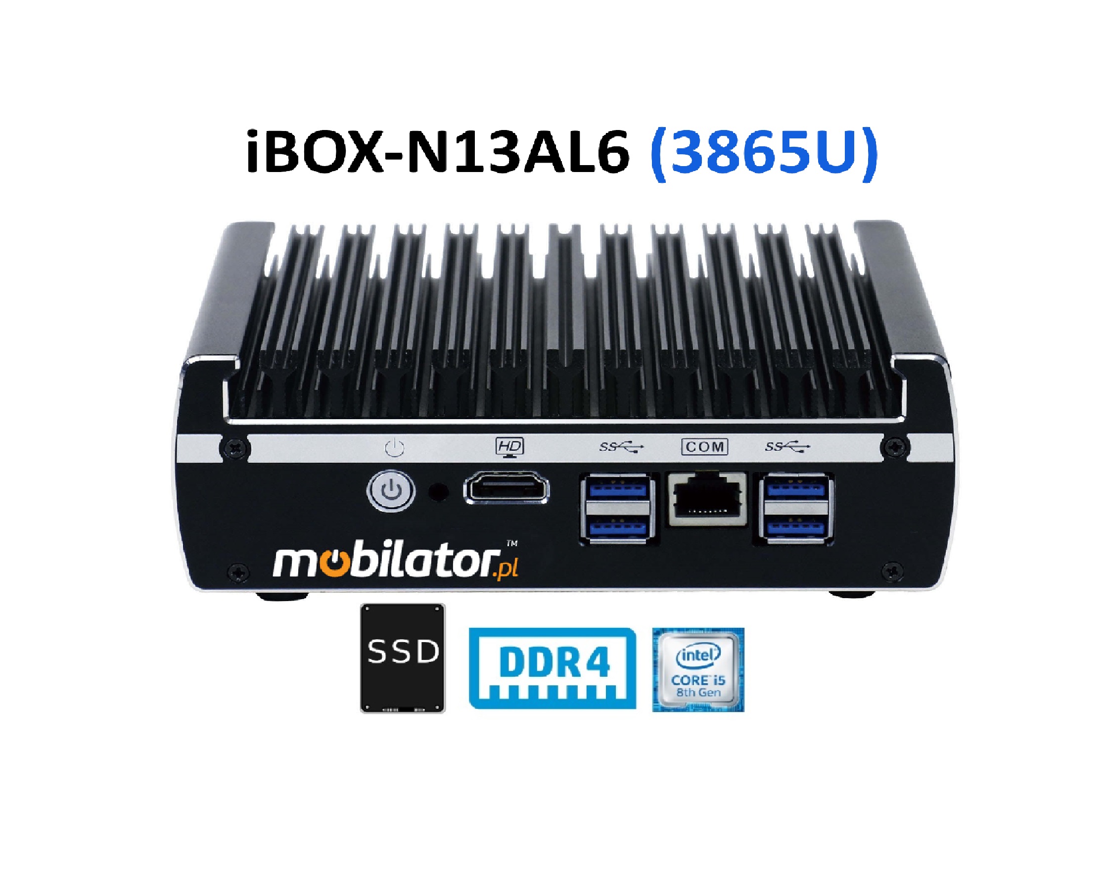The industrial mini-computer iBOX-N13AL6 uses an efficient and energy-saving Intel Celeron 3865U processor. Inside it there are two cooperating cores enabling more efficient processing of many tasks at the same time. The shared cache memory in which the multilevel hierarchy is used is dynamically allocated to each processor core depending on the load. This reduces the average access time to the main memory. The implemented Virtualization Technology (VT-x) allows one hardware platform to function as multiple “virtual” platforms. It offers improved manageability by limiting downtime and maintaining productivity by isolating computing activities into separate partitions.