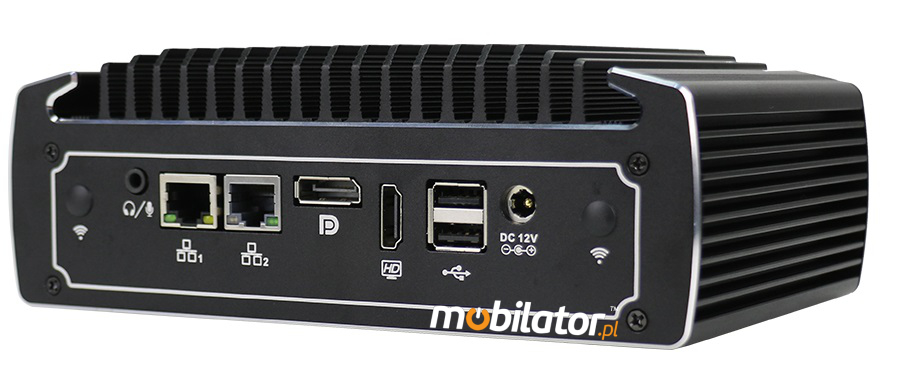 The industrial Mini PC uses a proven cooling system, based only on solid elements, mainly heat sinks. The system uses the phenomenon of metals passing thermal energy into the environment - there are no additional moving elements in the form of eg fans. This solution ensures noiseless operation, lower failure rate and greater protection against dust and other dirt while reducing the amount of energy consumed.