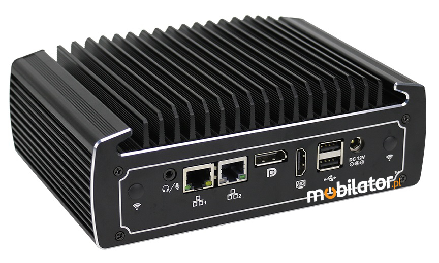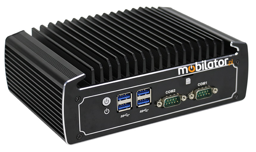 The industrial Mini PC uses a proven cooling system, based only on solid elements, mainly heat sinks. The system uses the phenomenon of metals passing thermal energy into the environment - there are no additional moving elements in the form of eg fans. This solution ensures noiseless operation, lower failure rate and greater protection against dust and other dirt while reducing the amount of energy consumed.