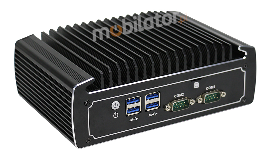 The industrial Mini PC uses a proven cooling system, based only on solid elements, mainly heat sinks.The system uses the phenomenon of metals passing thermal energy into the environment - there are no additional moving elements in the form of eg fans.This solution ensures noiseless operation, lower failure rate and greater protection against dust and other dirt while reducing the amount of energy consumed.
