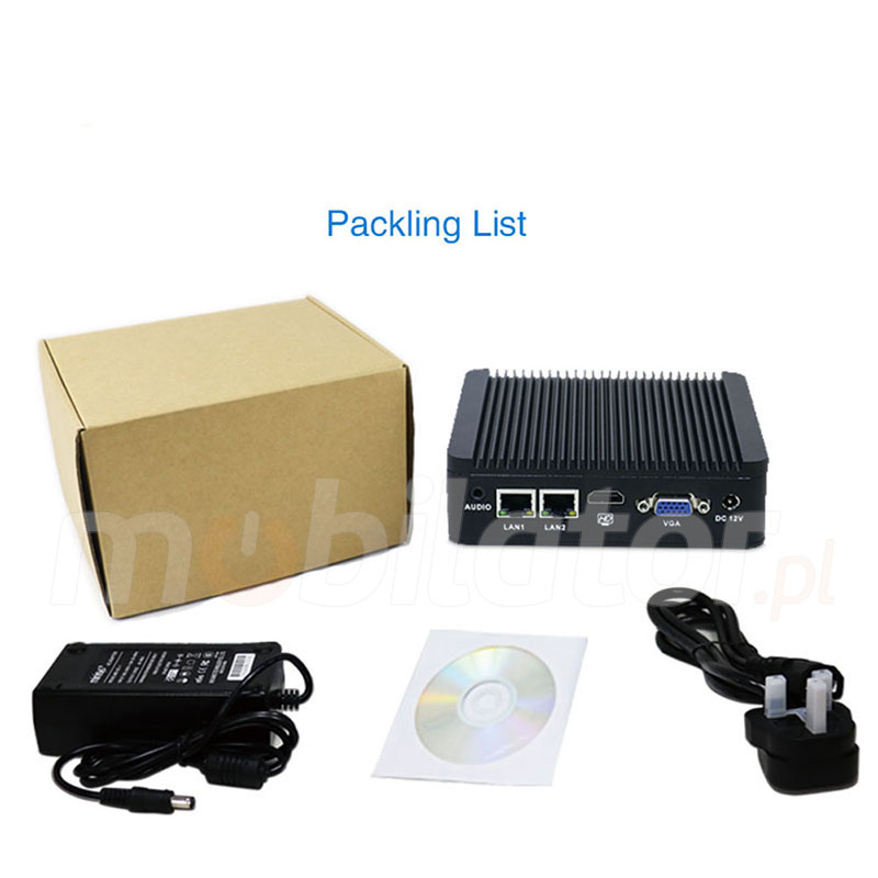 Wzmocniony mini Komputer Przemys³owy Fanless MiniPC IBOX N3P - N3540 Barebone front panel com rs232 mobilator szybki 2 lan rj45