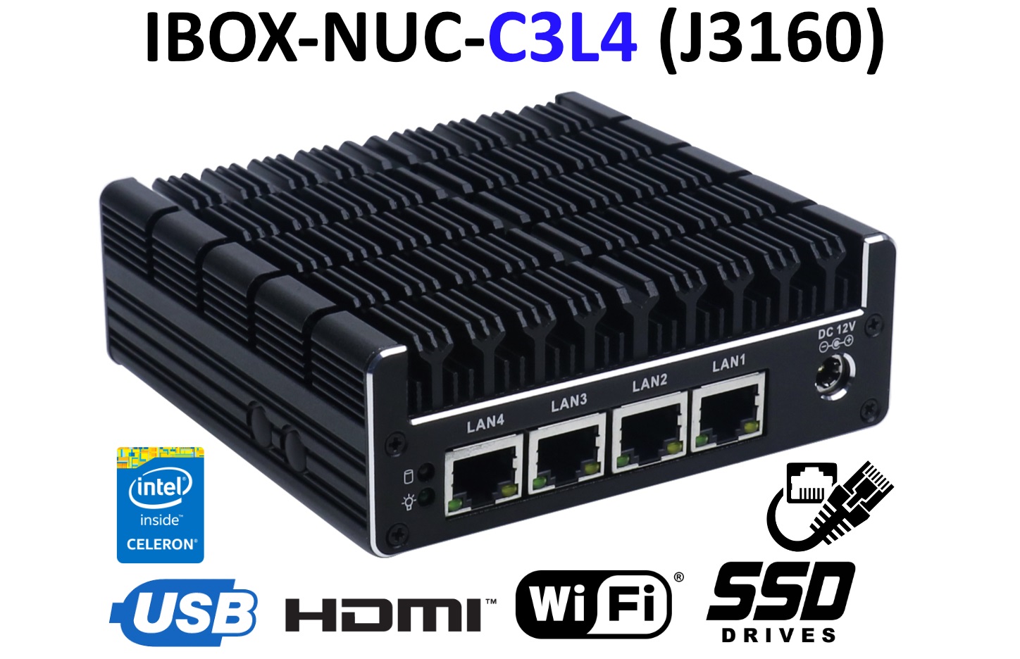 The MiniPC IBOX-NUC-C3L4 has built-in Realtek network adapter that can work in a fast Gigabit Ethernet network.