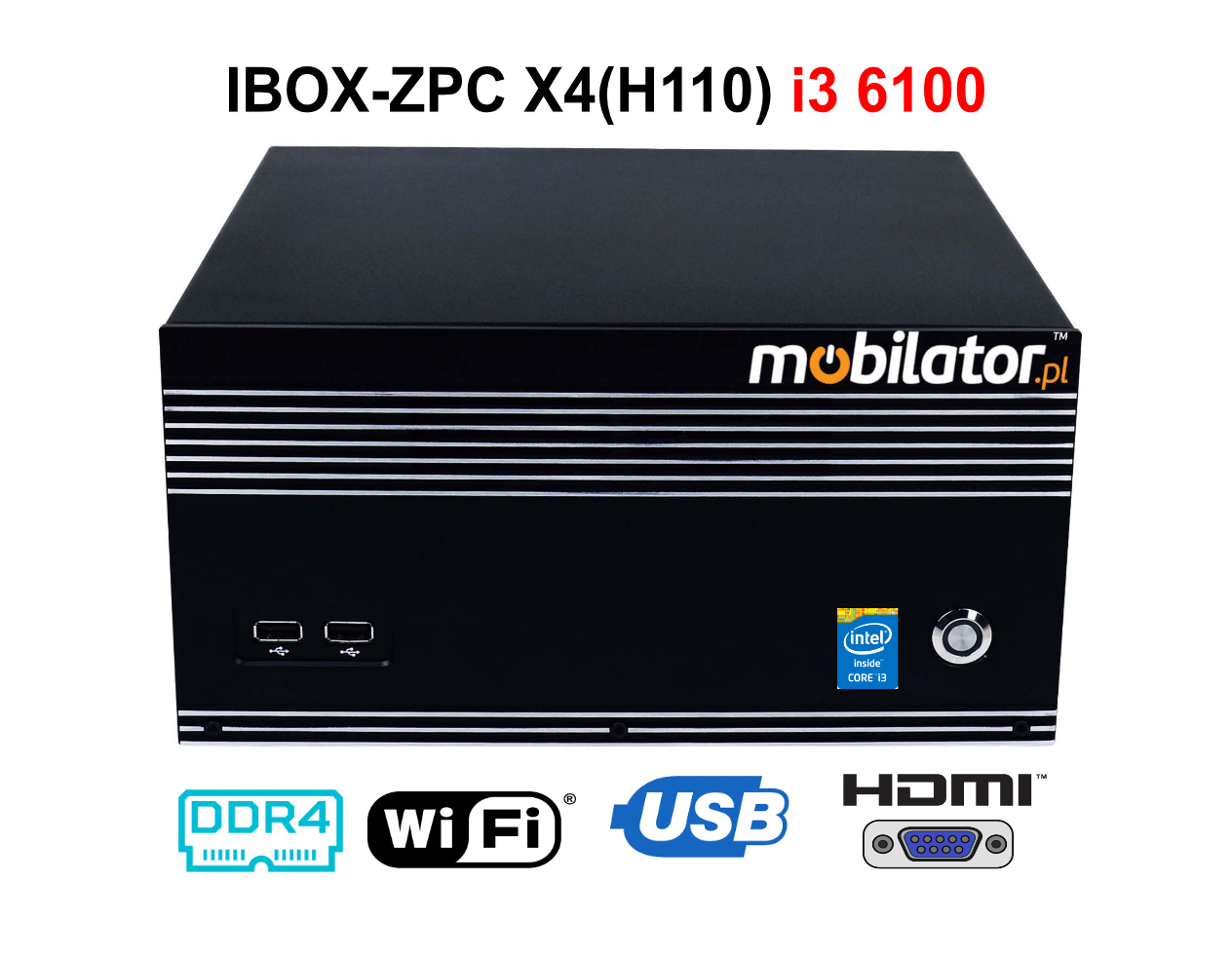 The industrial mini-computer IBOX-ZPC X4 uses an efficient and energy-saving Intel i3 6100 processor. Inside it there are two cooperating cores enabling more efficient processing of many tasks at the same time. The shared cache memory in which the multilevel hierarchy is used is dynamically allocated to each processor core depending on the load. This reduces the average access time to the main memory. It offers improved manageability by limiting downtime and maintaining productivity by isolating computing activities into separate partitions.