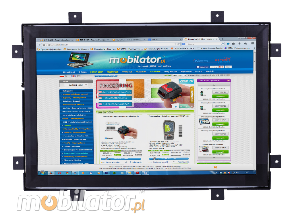 Industrial Panel PC through COM port (RS232) can be used to connect multiple devices in the warehouse (store) and make them easier to control. Its durable housing is perfectly designed for the harsh conditions prevailing in these areas. Any dust or dirt does not impede him in his work, will work without any problems even in high concentrations of dust and in polluted environments.