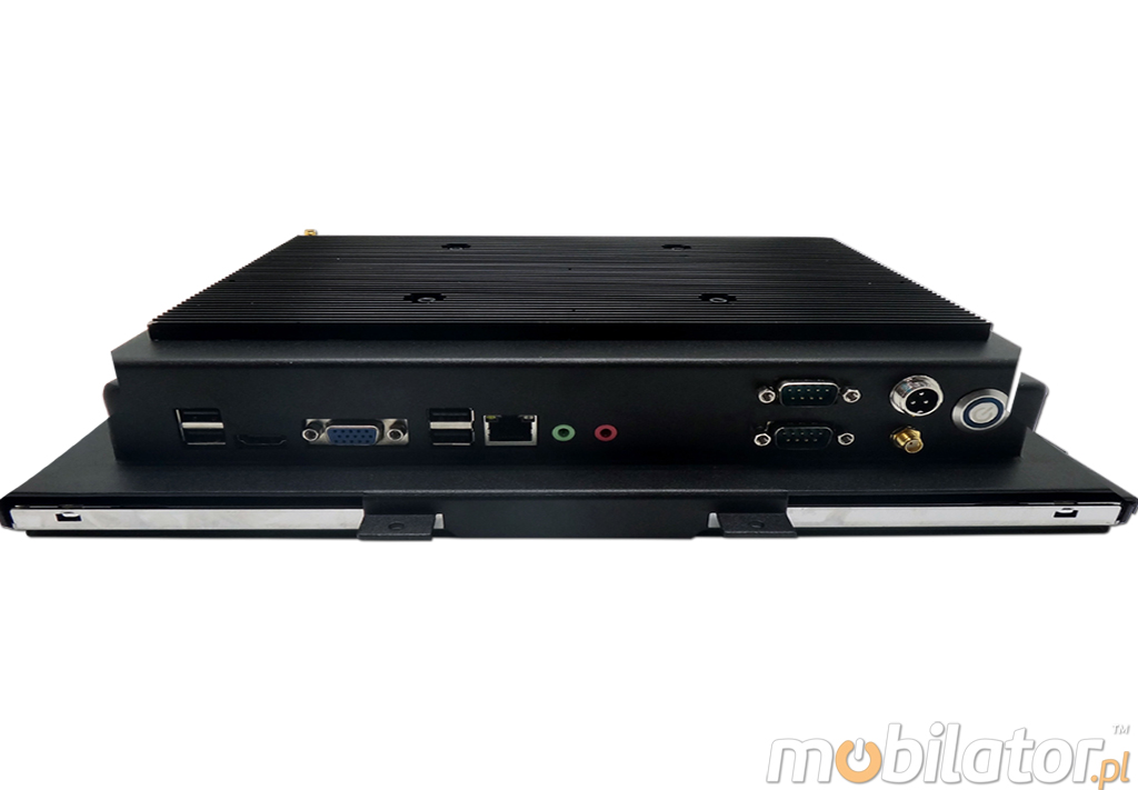 The integrated network card Intel RTL8111G 10/100/1000 Mbps LAN 2xRJ-45, WIFI allows you to connect the device to the network. The computer is equipped with: two LAN connector, three ports COM (RS232), one port COM (RS485), one VGA, one HDMI output, two USB 2.0 ports, one USB 3.0 port, one audio input, one input MIC, connector DC-in.