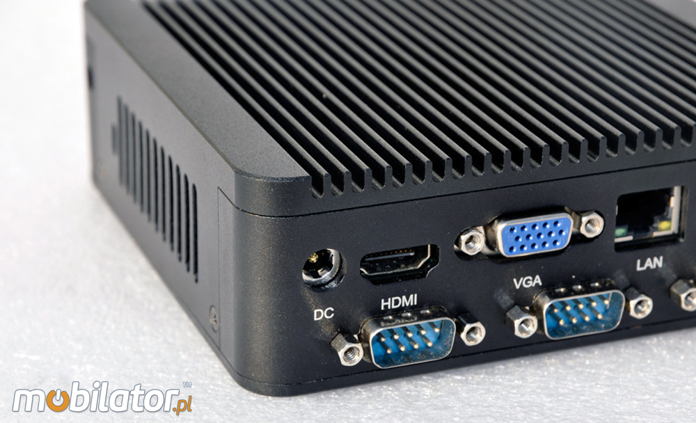 Industrial fanless MiniPC MBOX Nuc Q180P by to four USB ports can be used to connect multiple devices in the store or warehouse and make them easier to control. Its durable housing is perfectly designed for the harsh conditions prevailing in these areas. Any dust or dirt does not impede him in his work, will work without any problems even in high concentrations of dust and in polluted environments.