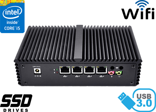 Integrated cards - Intel I211-AT- 10/100/1000 Controller and WiFi module allow connection to the network. The computer is equipped with: four LAN ports, one HDMI port, twoUSB 3.0 ports, two USB 2.0ports, one COM(RS232) port and abuilt-inconnectoron the motherboard: SATA port, MiniSATA port, one Mini-PCIE connector.