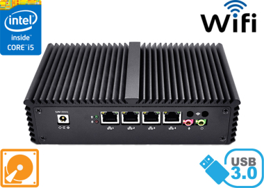 Integrated cards - Intel I211-AT- 10/100/1000 Controller and WiFi module allow connection to the network. The computer is equipped with: four LAN ports, one HDMI port, two USB 3.0 ports, two USB 2.0 ports, one COM(RS232) port and a built-in connector on the motherboard: SATA port, MiniSATA port, one Mini-PCIE connector.