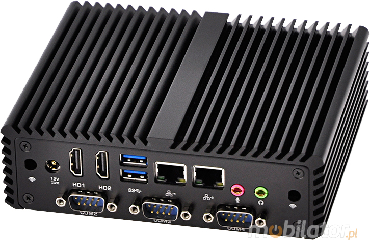 Industrial Computer Fanless MiniPC mBOX Nuc Q430P by USB ports can be used to connect multiple devices in the store or warehouse and make them easier to control. Its durable housing is perfectly designed for the harsh conditions prevailing in these areas. Any dust or dirt does not impede him in his work, will work without any problems even in high concentrations of dust and in polluted environments.