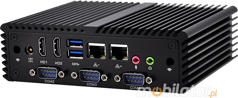 Integrated card - Realtek RTL8111E 10/100/1000 Controller and WiFi module allow connection to the network. The computer is equipped with: two LAN ports, two HDMI ports, twoUSB 2.0ports, four USB 3.0 ports, four COM(RS232) ports one Audio input and one Mic output.