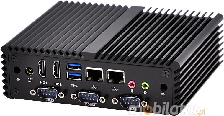 Industrial Computer Fanless MiniPC mBOX Nuc Q450P by USB ports can be used to connect multiple devices in the store or warehouse and make them easier to control. Its durable housing is perfectly designed for the harsh conditions prevailing in these areas. Any dust or dirt does not impede him in his work, will work without any problems even in high concentrations of dust and in polluted environments.