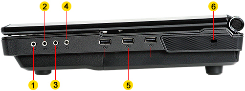 While most gaming notebooks supply four USB ports at most, the P570WM barebone sports five USB ports (3x 3.0 & 2x 2.0). Four audio jacks (microphone, headphone, line-in, S/PDIF) and three digital video outputs (DVI, DisplayPort, HDMI) must also be praised. eSATA and FireWire are also installed. In addition to that, there is a Kensington lock, RJ45 Gigabit LAN port, a 9in1 card reader and an ExpressCard slot. The antenna input of the old model has fallen victim to cutbacks.